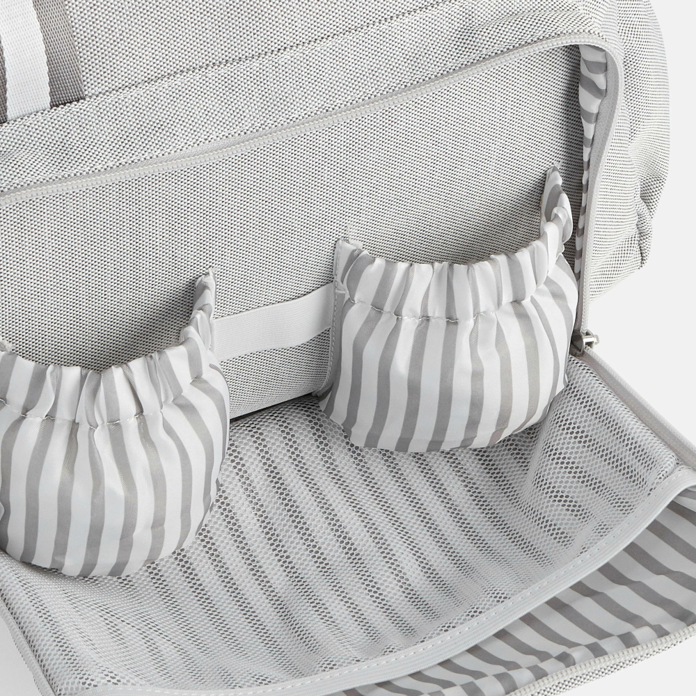 Gezileriniz ve seyahatleriniz için tasarlanmış bu son derece kullanışlı ve hayatınızı kolaylaştıran anne bakım çantası vazgeçilmeziniz olacak. Giysi, oyuncak ve bebek hijyen malzemelerini rahatlıkla ve güvenle koyabileceğiniz esnek üç cepli bir iç bölmeye ve anahtar, sağlık belgelerini koyabileceğiniz dış ceplere sahiptir.