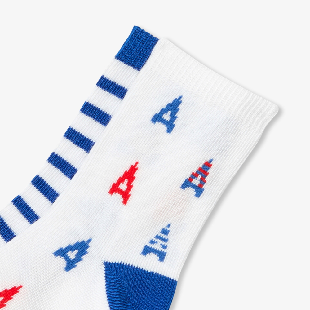 Eyfel Kulesi motifleri ve çizgili tasarımıyla öne çıkan bu erkek bebek çorapları, ilkbahar kombinlerine şık bir Paris dokunuşu katar. Yumuşak ve esnek örgü yapısı sayesinde gün boyu konfor sunan model, günlük stilin zarif tamamlayıcılarından biridir.