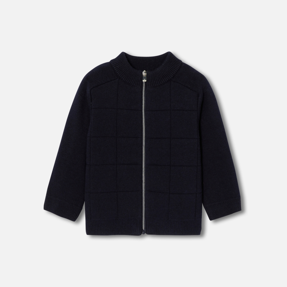 Bu erkek bebek hırkası günlük kullanım için tasarlanmıştır ve şık, sade bir görünüme sahiptir. Organik pamuk ve sorumlu yünden üretilen küçük oğlunuz, Paris cazibesine sahip bir silüet için denizci kıyafeti ve kıvrılmış jean pantolonla giyebilir.