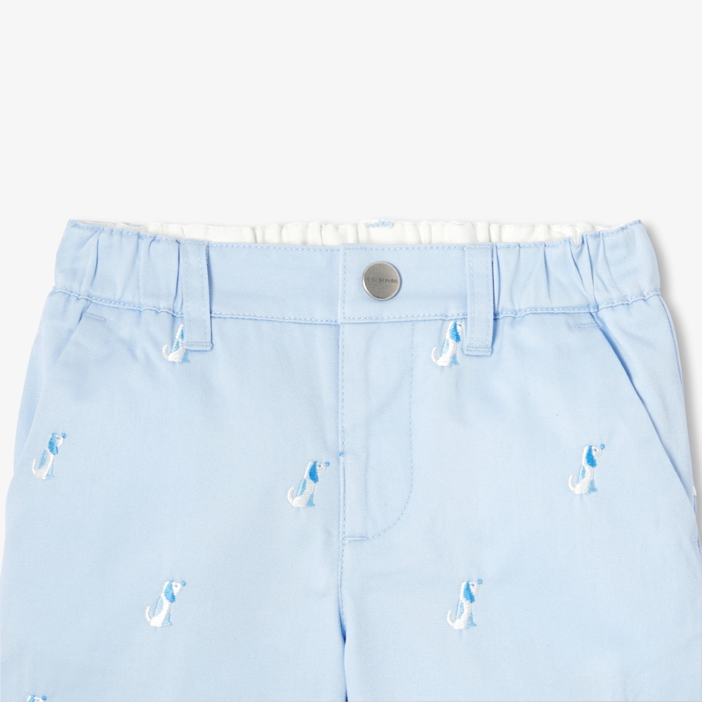 Klasik tasarımı eğlenceli bir dokunuşla buluşturan bu erkek bebek şort, küçük köpek nakış detaylarıyla öne çıkar. Yumuşak twill kumaşı sayesinde konforlu ve kolay giyilebilir bir yapı sunan model, polo tişört veya basic tişörtlerle kombinlenerek yaz gardırobunun vazgeçilmez parçalarından biri olur.