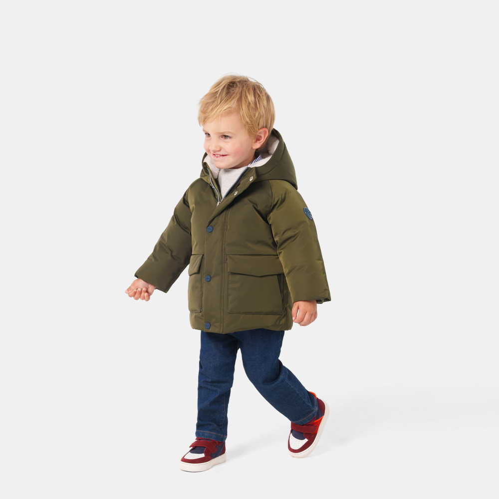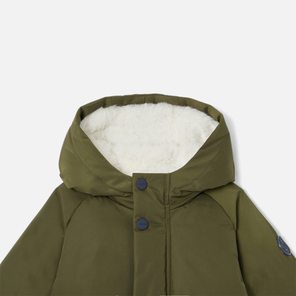 Modern şıklığın kodlarını bu erkek bebek montu oluşturuyor. Su geçirmez naylondan üretilen, konforlu suni kürk astarı ve RDS sertifikalı tüy dolgusu sayesinde kaplayan şık ve zamansız rengi, bebeğin Sonbahar gardırobuna kolaylıkla uyum sağlayacak. Şehirde veya aile tatillerinde giyilen bu sıcak tutan kabanı tercih edin, bebeğinizi tüm keşifleri boyunca takip edecek.