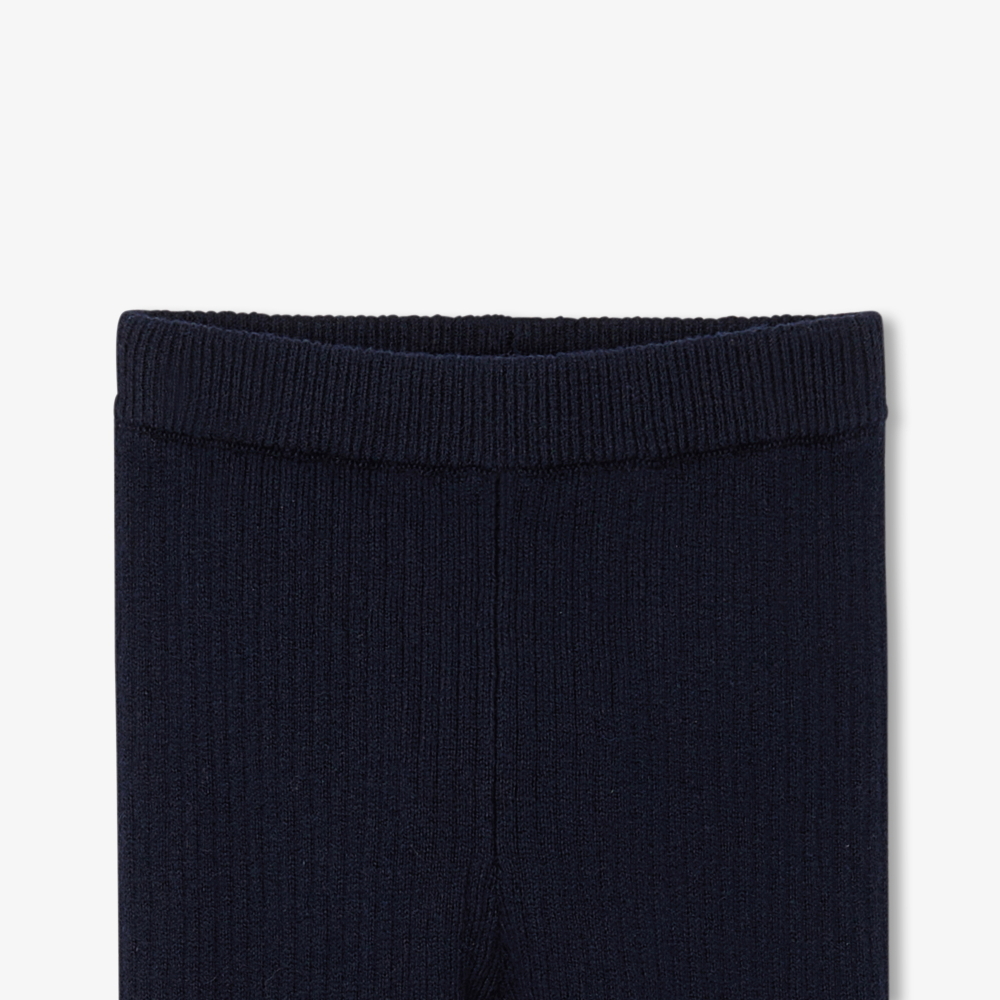 Evde geçirilen keyifli hafta sonları ve günlük kullanım için ideal bu örme pantolon, yumuşak dokusu ve rahat kalıbıyla konfor sunar. Organik pamuk ve sürdürülebilir yün karışımından üretilen pantolon, esnek bel lastiği sayesinde kolayca giyilir. Uzun kollu body veya triko kazaklarla kolayca kombinlenir.