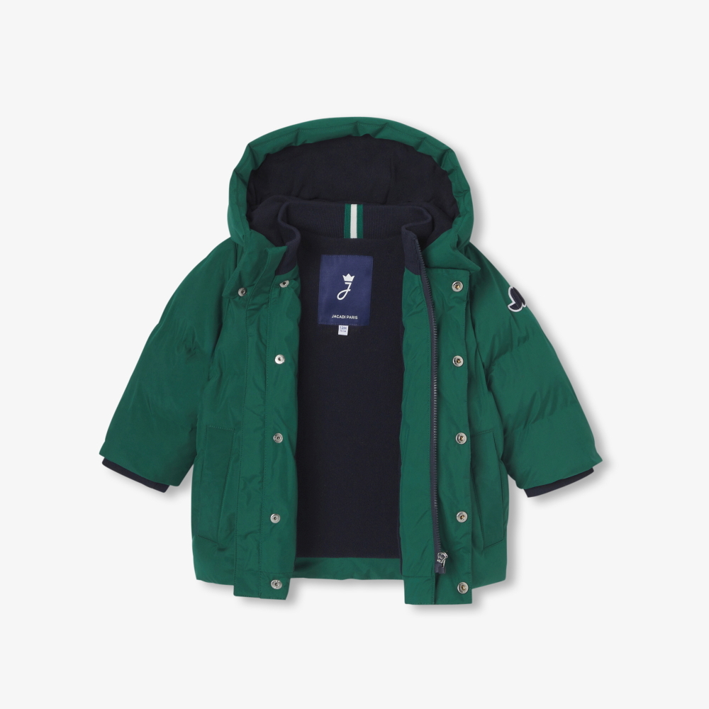 Her zamanki gibi yüksek performanslı olan bu erkek bebek montunun tasarımını, şık ve şehirli bir parça haline getirmek için tasarımcılarımız yeniden tasarladı. Tüy kadar hafif ve su geçirmez olan mikro polar astarı ve kabarık geri dönüştürülmüş elyaf dolgusu, onu soğuğa karşı ideal bir yardımcı haline getiriyor. İster şehirde ister kayak pistlerinde giyilsin, koruma ve konfor sağlayan yüksek yakası ve nervürlü manşetleriyle sonbahardan itibaren her yerde.