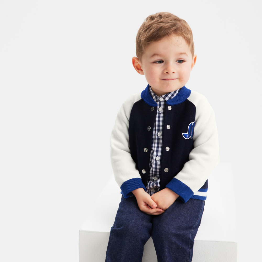Tasarımcılarımız, yumuşak örgüsü sayesinde rahat, çağdaş bir Teddy tarzı hırka yaratmak için erkek bebek hırkasının kesimini yeniden tasarladılar. Her mevsim için olmazsa olmaz olan bu hırkayı, küçük şehir sakinleri okula dönüş için kıvrılmış jean pantolonlar ve koşu ayakkabılarıyla giymeyi çok sevecekler.