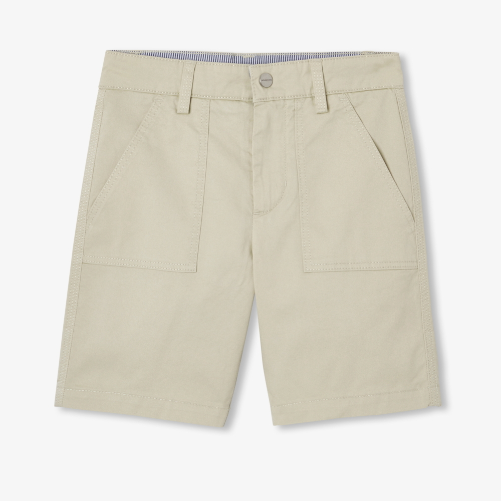 Hafif twill kumaşı ve geniş kargo cep detaylarıyla öne çıkan bu erkek çocuk bermuda şort, modern ve şehirli bir stil sunar. Konforlu yapısı ve kolay giyilebilir formuyla günlük kullanım için ideal olan model, özenli iç detayları ve trend açık haki rengiyle dikkat çeker. Havlu kumaş polo tişört ve sandaletlerle kombinlenerek şık bir görünüm elde edilir.