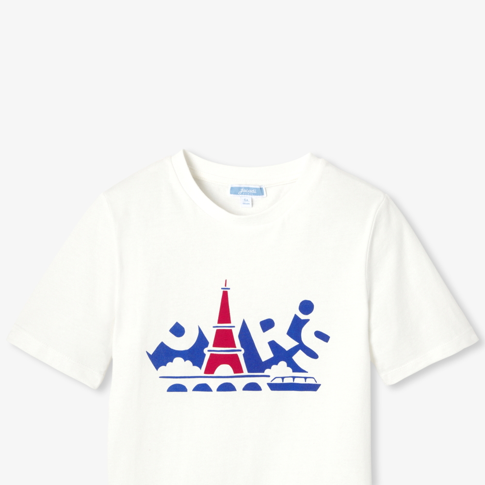 Zamansız beyaz tonu ve Paris’ten ilham alan eğlenceli tasarımıyla bu erkek çocuk pamuklu tişört, günlük görünümlere modern bir dokunuş katıyor. Ön yüzündeki grafik yazı detayında, “A” harfi yerine kullanılan Eyfel Kulesi; köprü ve tekne illüstrasyonlarıyla birlikte Paris ruhunu zarif bir şekilde yansıtıyor. Yumuşak dokulu örgü yapısı sayesinde gün boyu konfor sunan bu parça, zamansız ve şehirli bir stil için ideal.