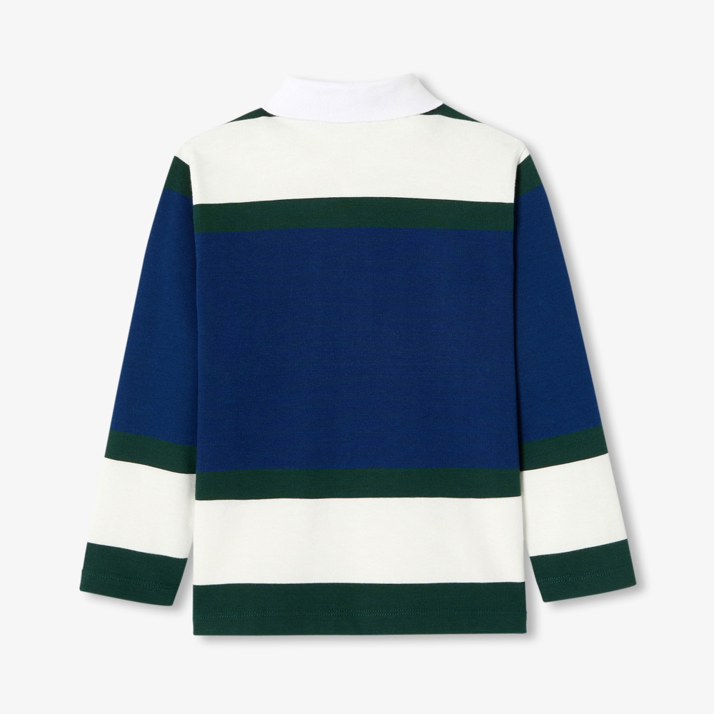 Kampüs ruhuyla bu rugby polo sweatshirt, sportif ve renkli bir hazırlık sezonunun habercisi. Yumuşak ve rahat, kalın pamuklu jarse kumaştan üretilen bu sweatshirt, asimetrik çizgilerle modernize edilmiştir. Jacadi markasının kuruluş yılı olan işlemeli 76 rozetiyle tamamlanan tişörtü, oğlunuz günlük giyim ve spor dersleri için kadife pantolon veya eşofman altıyla giymeyi çok sevecektir.