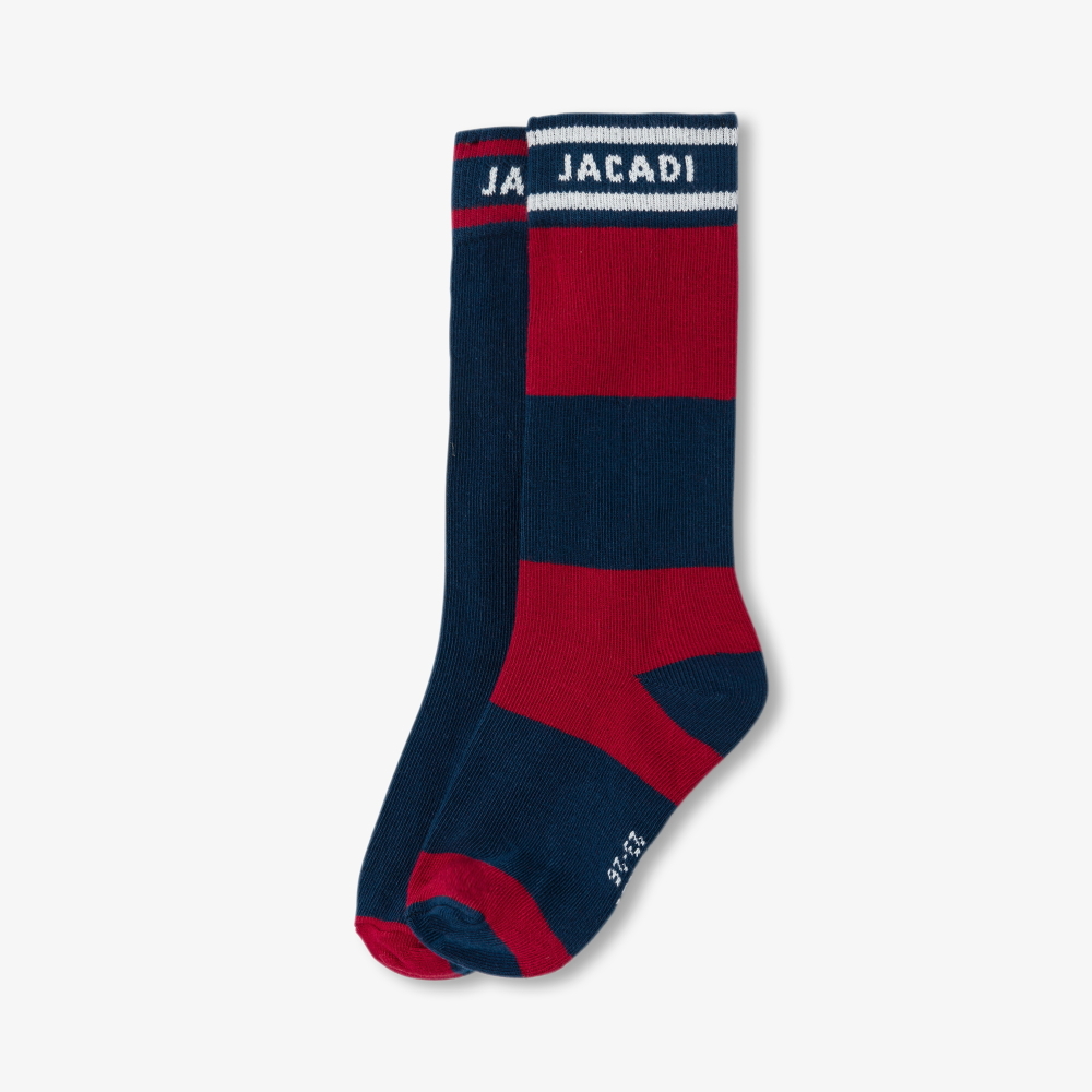 Günlük stile sportif bir dokunuş katan bu yüksek boy çoraplar, rugby çorap ruhundan ilham alarak modern bir şekilde yeniden yorumlandı. Bir çift çizgili, diğer çift düz tasarımlı olan bu çoraplar; eşofmanlarla veya paçaları kıvrılmış jeanlerle kombinlendiğinde iddialı bir görünüm sunar. Okula dönüş dolabında kendine kolayca yer bulacak zamansız bir set.