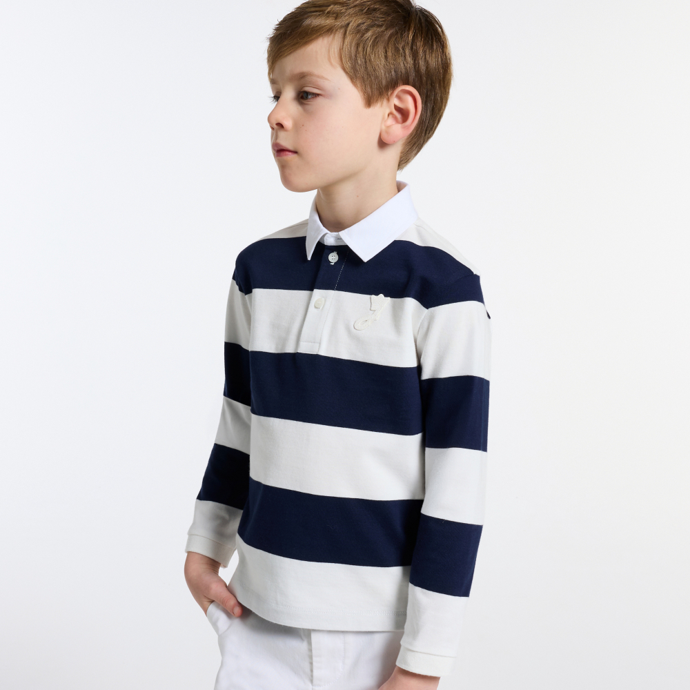 - %100 organik pamuktan erkek çocuk çizgili polo tişört
