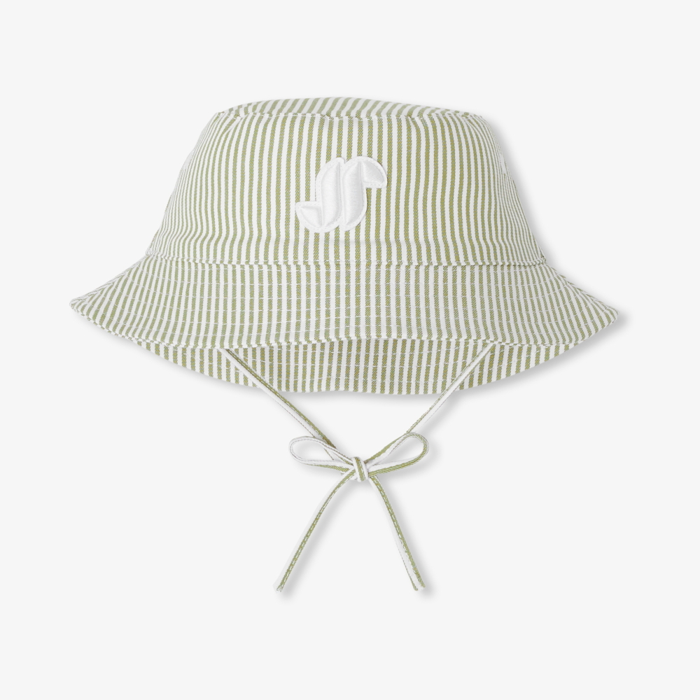 Klasik şapka formundan ilham alan bu bebek güneş şapkası, çizgili pamuk kumaşıyla yaz kombinlerini tamamlar. Astarlı yapısı ve bağcıklı tasarımı sayesinde konforlu ve güvenli bir kullanım sunar. İlkbahardan yaz sonuna kadar günlük stilin şık bir tamamlayıcısıdır.