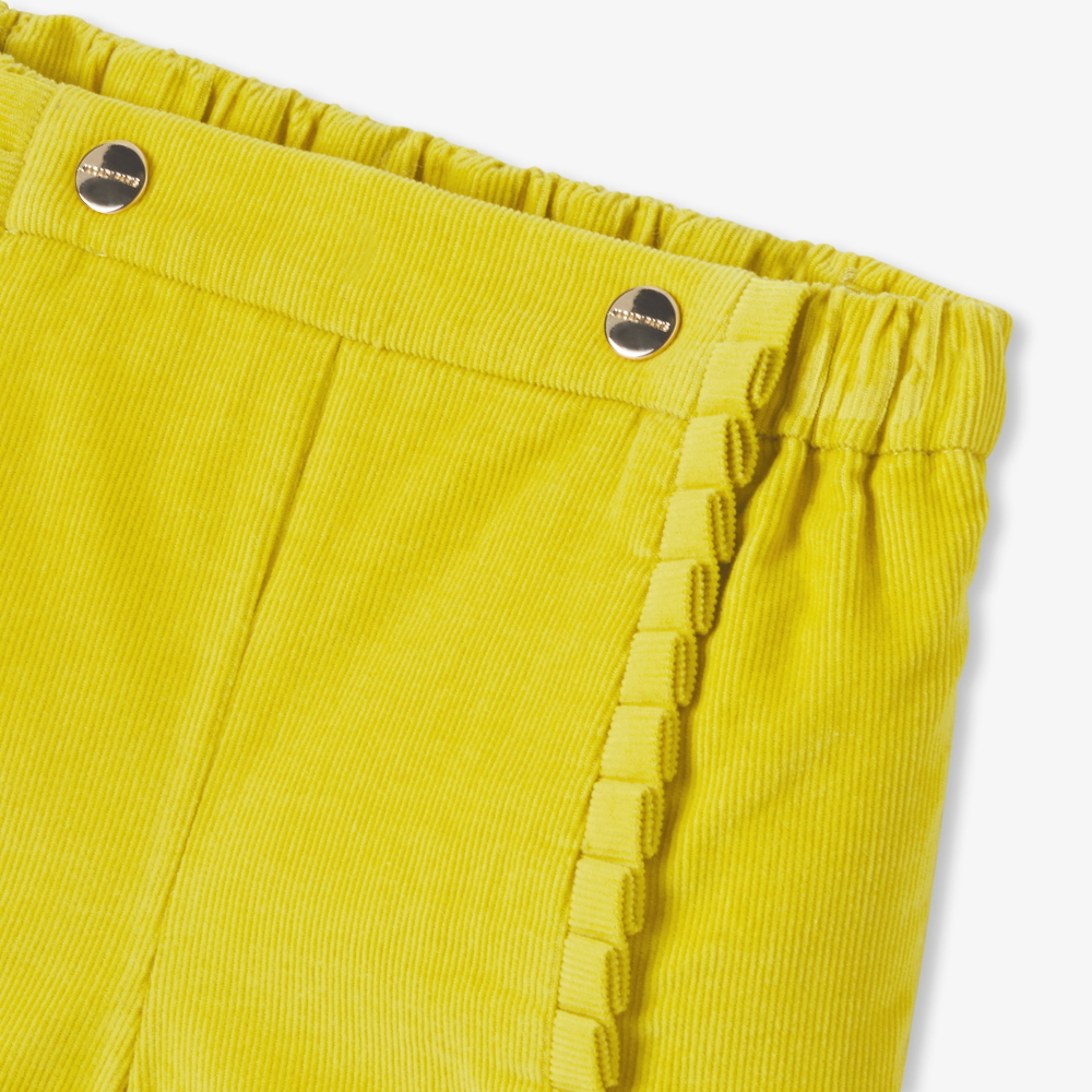 Bu kız bebek şortu, retro-şık bir gardırobun vurguladığı bir sezona damgasını vuruyor. Cesur renkte babycord kadife kumaştan üretilen bu model, fırfır detayları ve altın rengi şeritli perçinlerle günlük kullanıma uygun ekstra bir stil katıyor. Şık ve Parisli bir görünüm için Liberty bluz ve örme atlet ile kombinleyin.