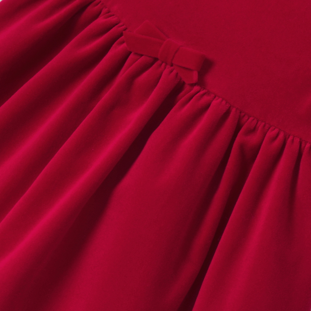 Tasarımcılarımızın özel olarak hazırladığı bu elbise, yumuşacık kadife dokusu ve canlı renkleriyle sezonun en zarif parçalarından biridir. Petal kol detayları, önde zarif fiyonk süslemesi, büzgülü düşük bel kesimi ve dalgalı etek ucu ile modern ve şık bir siluet sunar. Külotlu çorap ve Mary Jane tarzı ayakkabılarla kombinlendiğinde, özel günler için mükemmel bir görünüm oluşturur.