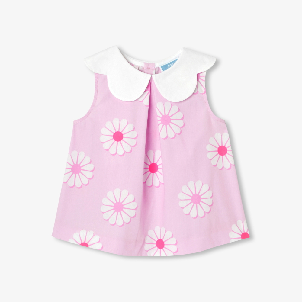 Jacadi’nin ikonik stilini yansıtan bu kız bebek bluz, ilkbahar sezonuna zarif ve dikkat çekici bir yorum getirir. Büyük papatya desenleri ve maxi dalgalı yakasıyla öne çıkan bu hafif pamuk poplin model, pamuk saten pantolonlarla kombinlendiğinde şık ve Paris esintili bir görünüm oluşturur.