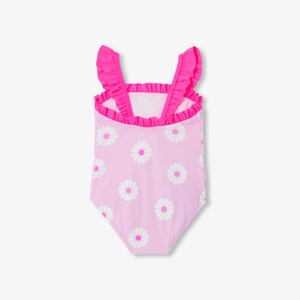 Canlı çiçek desenleri ve zarif fırfır detaylarıyla öne çıkan bu kız bebek mayo, koleksiyonun imza desenlerinden birini taşır. Neon pembe fırfırlı yaka ve askı detaylarıyla hareket kazanan model, yaz boyunca su oyunları ve tatil günleri için ideal bir seçenektir.