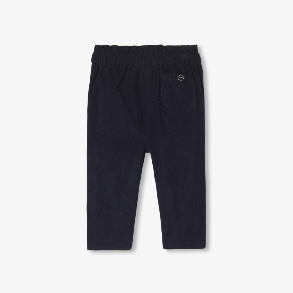 Lastikli torba bel bandına sahip havuç kesimli bu kız bebek pantolonu, yumuşak ve dayanıklı Milleraie kadifesinden üretilmiştir. Jarse astarlı bu klasik gardırop parçası, günlük kullanım için tasarlanmıştır ve bir kazak veya bluzla aynı derecede iyi uyum sağlar.