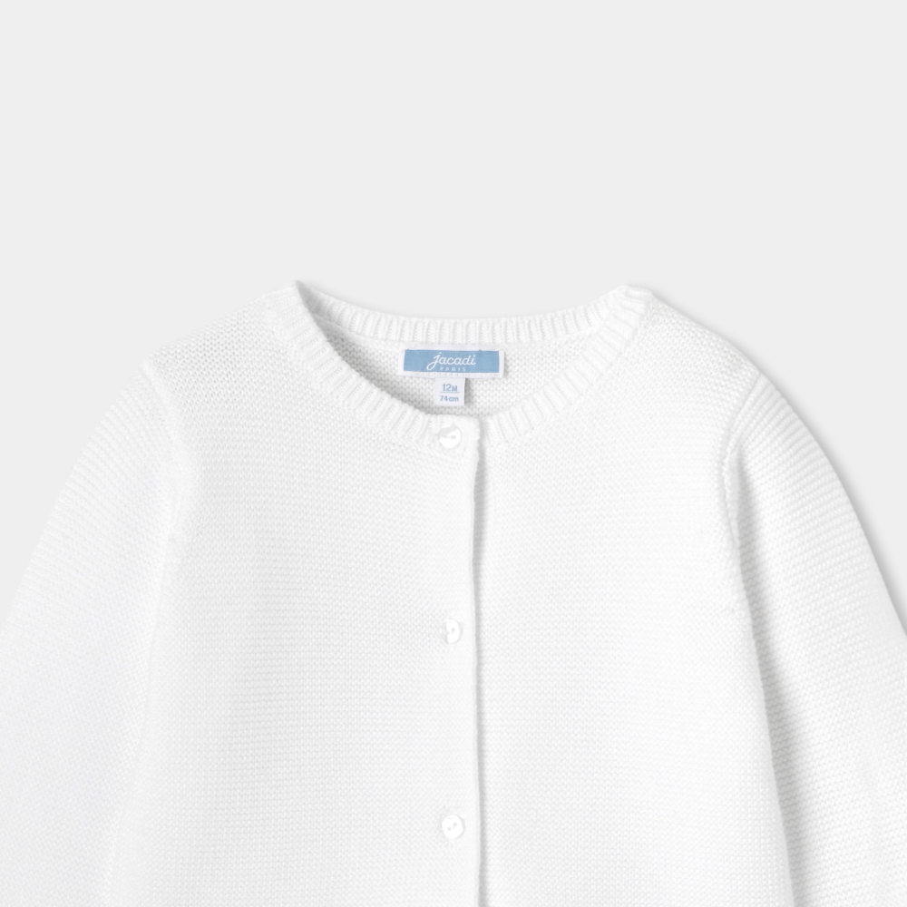 Gardırobun zamansız parçalarından biri olan bu kız bebek hırka, kolay kombinlenebilen şık renk tonlarıyla tasarlanmıştır. Haroşa örgü dokusu ve minimal tasarımıyla öne çıkan bu model, bluz veya t-shirtlerin üzerine giyilerek ilkbahar günlerinde bebeğinizi sıcak tutarken zarif bir görünüm sunar.