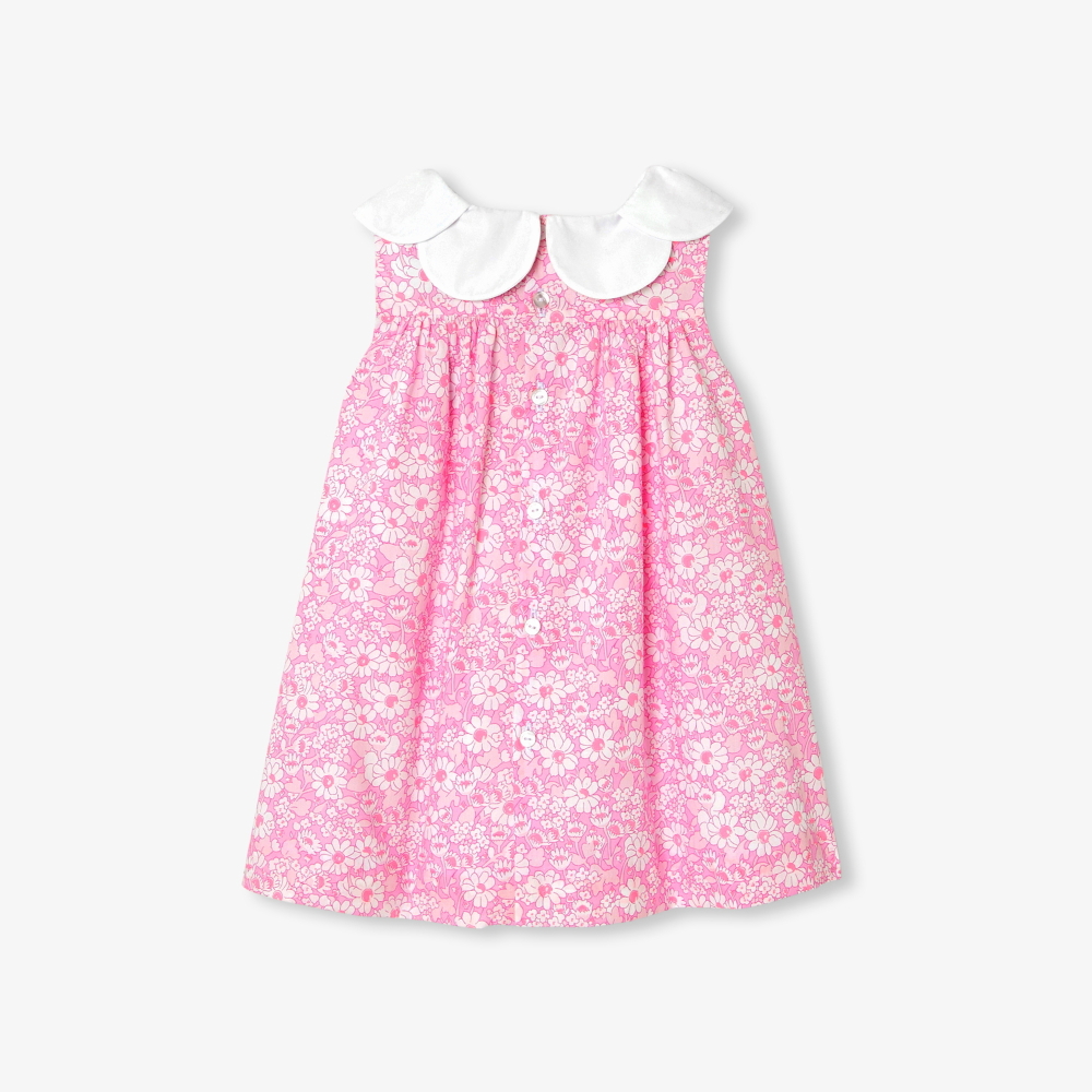 - Jacadi’ye özel renklendirilmiş Liberty Alice W kumaştan kız bebek özel gün elbisesi