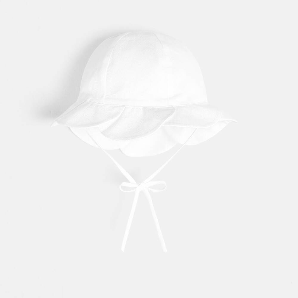 Pamuklu pike kumaştan üretilmiş ve astarlanmış olan bu kız bebek şapkası, taç formunda bir kenar detayıyla süslenmiştir. Bağlama kapamaları bulunan bu şapka, kolay kombinlenebilen renk seçenekleriyle sunulur ve bebekleri güneş ışınlarından korur.