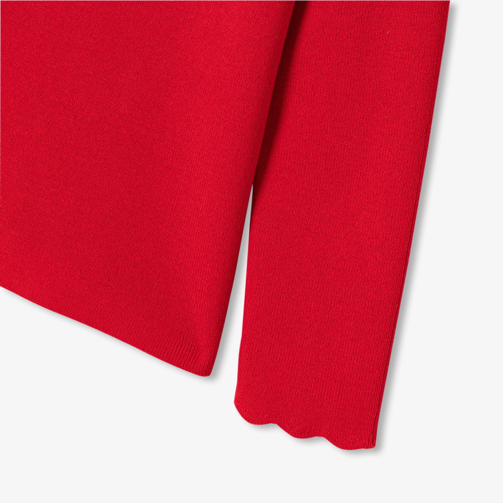 Sezon başı için ideal olan bu kız çocuk kazağı, vücuda oturan kesimi ve boğazlı tasarımıyla öne çıkar. Organik pamuktan üretilmiş model, ince ribanalı örgü ve tığ işi detaylarla tamamlanmıştır. Trapez etek veya geniş paça pantolonlarla kombinlenerek modern retro bir stil yaratır.