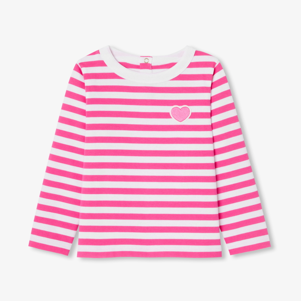 Jacadi, ikonik çocuk denizci tişörtünü her sezon yeniden yorumluyor. Okula dönüş için organik pamuklu jarse kumaştan üretilen bu t-shirt, göğüs kısmındaki işlemeli kalp deseniyle günlük kullanıma uygun hale geliyor. Bol kesim jean pantolon ve spor ayakkabılarla veya kadife şortlarla giyilebilen bu şık ve çok yönlü model, şık ve Parisli bir görünüm için her şeyle uyum sağlıyor.