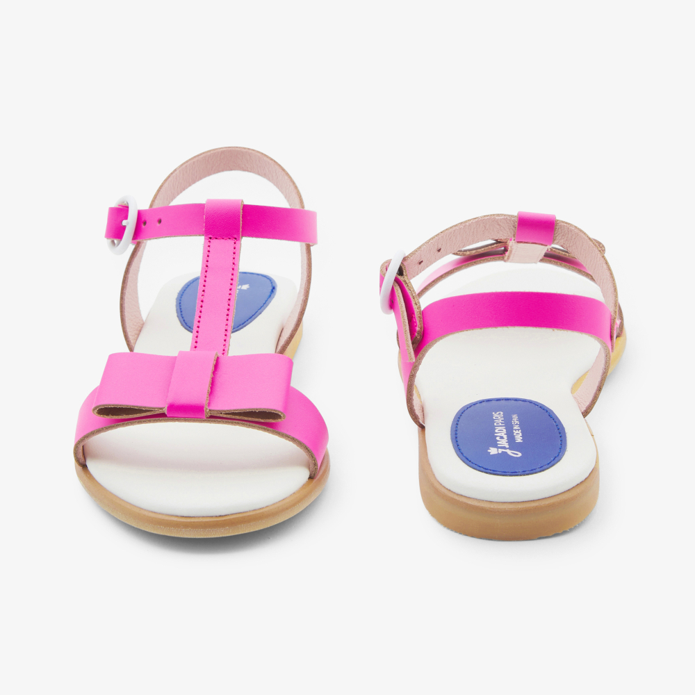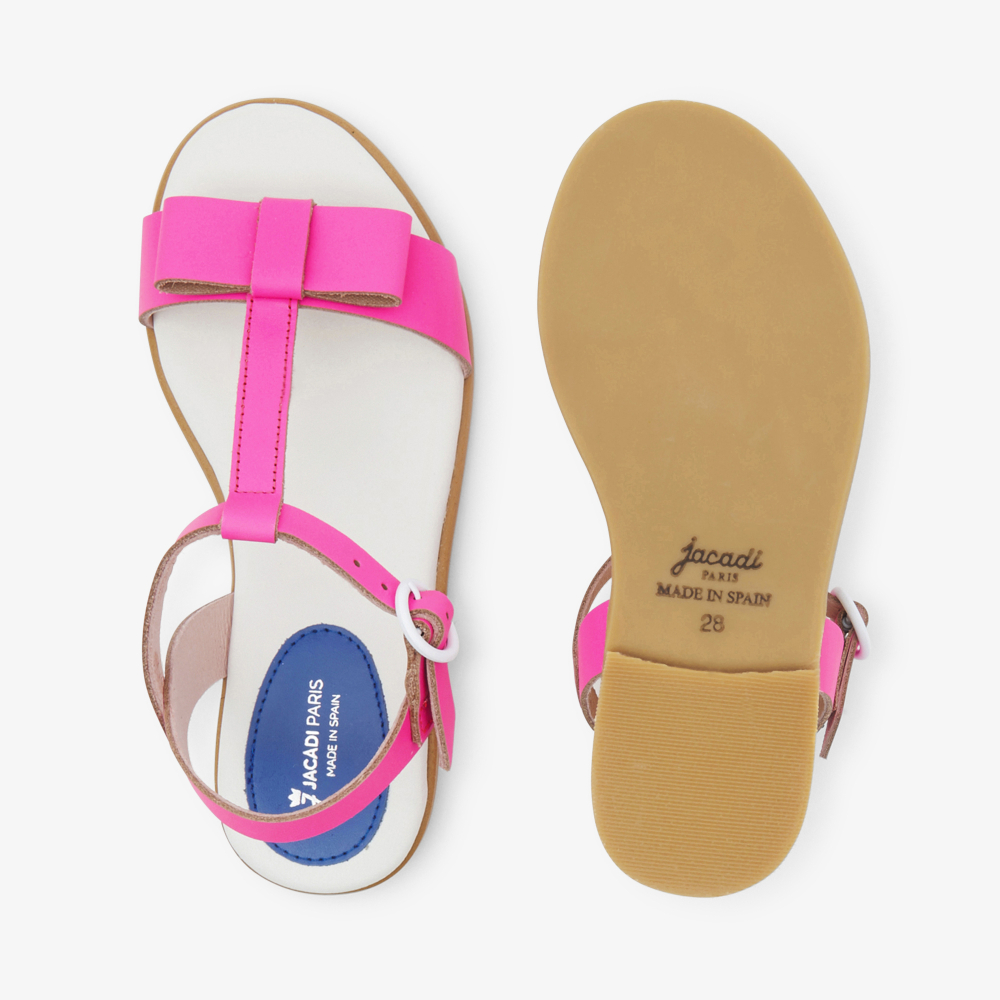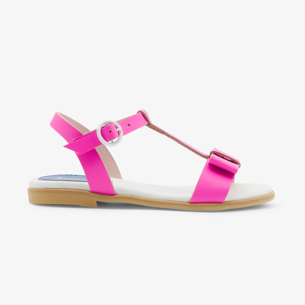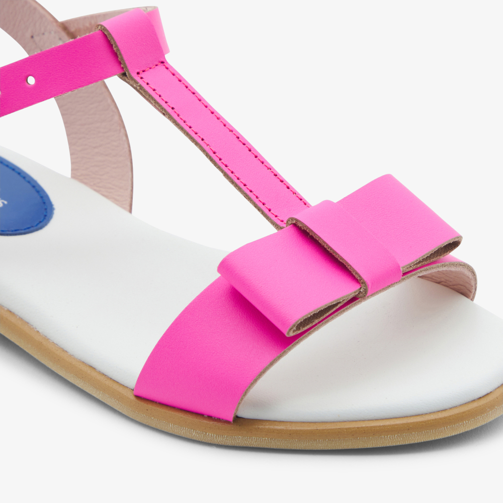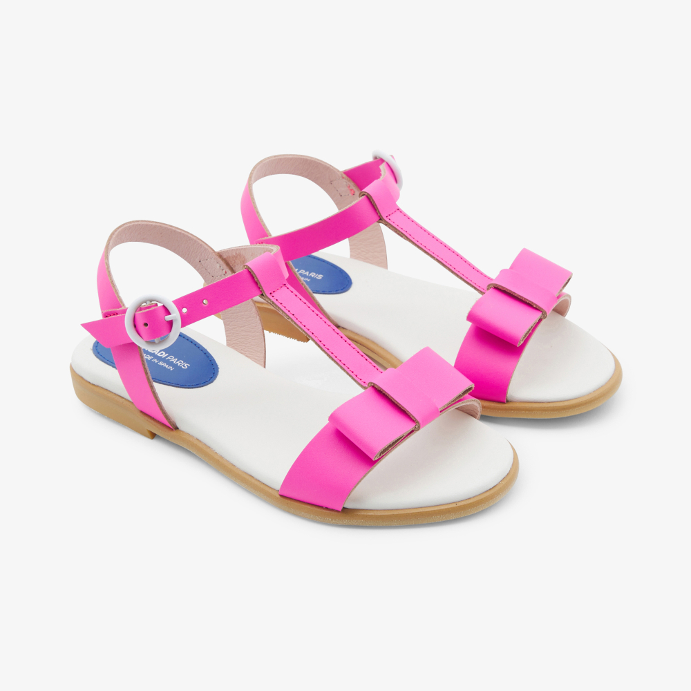 Bu kız çocuk sandaletleriyle renkli bir gardıropla vurgulanan bir yaz sezonu. Özel bir gün için hayal edilen ve bir tatil kıyafetini tamamlamak için giyilen, zarif düz fiyonk ve canlı renkler bu ayakkabıları şimdi sunmak için süslüyor.
