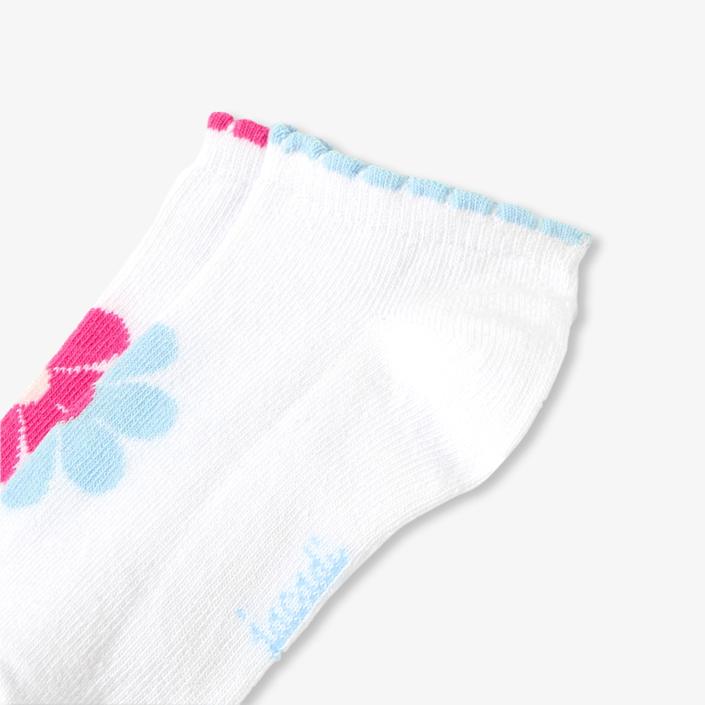 İlkbahardan ilham alan bu kız çocuk çorapları, canlı renkleri ve intarsia çiçek detayıyla günlük kombinlere neşeli bir dokunuş katar. Bilek kısmındaki kontrast dalgalı kenar detayı tasarıma zarif bir hareket kazandırırken, spor ayakkabılar veya babetlerle rahatlıkla kullanılabilir.