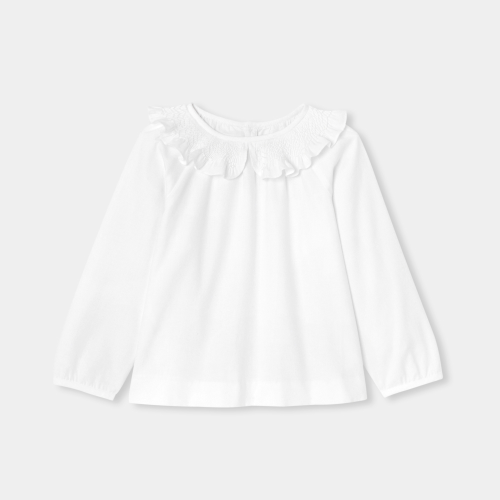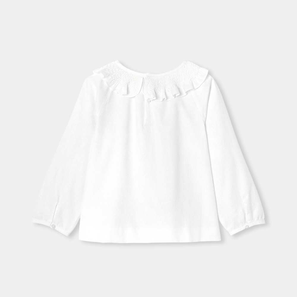Zarif detayları ve özenli dikişleriyle sonbahar şıklığını yansıtan bu kız çocuk bluz, yumuşak ve konforlu organik pamuk flanel kumaştan üretilmiştir. Ton sür ton nakışlarla süslenmiş fırfırlı yakası, modele sofistike bir dokunuş katar. Geniş kadife pantolonlar ve klasik bir paltoyla kombinlenerek kusursuz bir şehir stili oluşturur.
