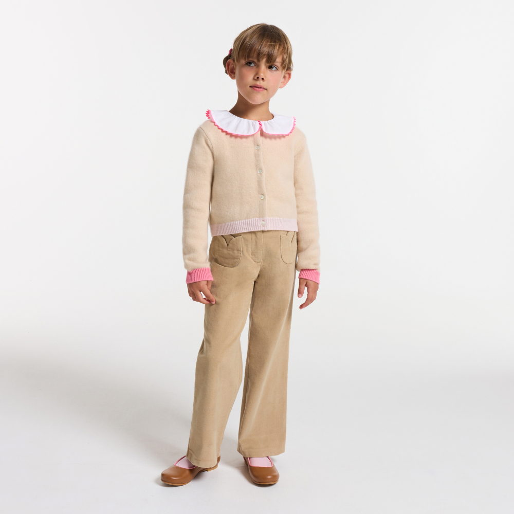 Jean’lere zarif bir alternatif olarak tasarlanan bu retro-şık pantolon, günlük şıklığı konforla birleştirir. Esnek ince Milleraies kadife kumaştan üretilen, geniş paçalı kesimiyle modern bir duruş sunar. Çiçek formundaki cep detaylarıyla öne çıkan bu model, bluz ve hırkayla kombinlendiğinde şehirli ve zarif bir siluet oluşturur.
