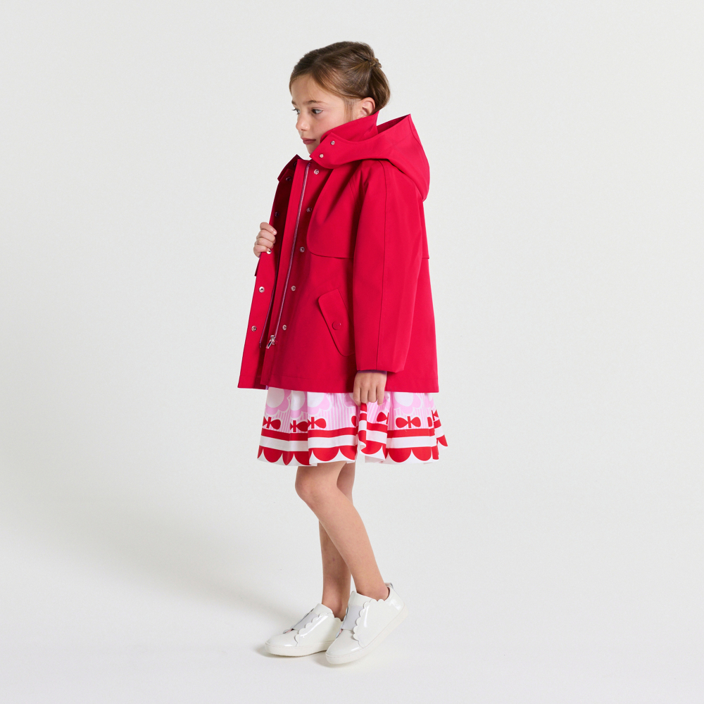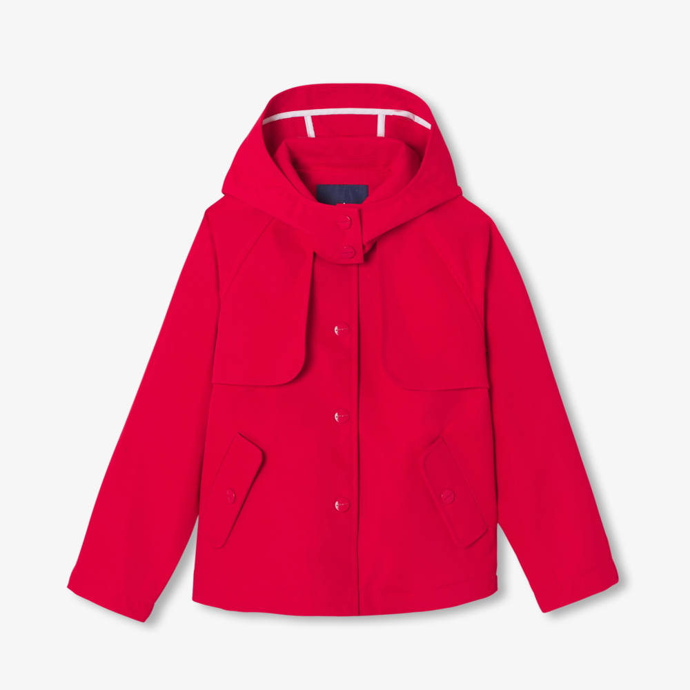 Canlı kırmızı rengi ve beyaz biye detaylarıyla Jacadi’nin şık ruhunu yansıtan bu kız çocuk kısa trençkot, modern bir görünüm sunan kısa kesimiyle öne çıkıyor. Hafif kanvas kumaşı sayesinde mevsim başı için ideal olan model; çıkarılabilir kapüşonu, bebe yaka detayı ve ton sür ton çıtçıtlarıyla zarif bir tasarım sunuyor. Astarsız yapısı sayesinde rahatlıkla çizgili gömlekler ve bol paça jeanlerle kombinlenerek şehirli Paris stilini tamamlar.