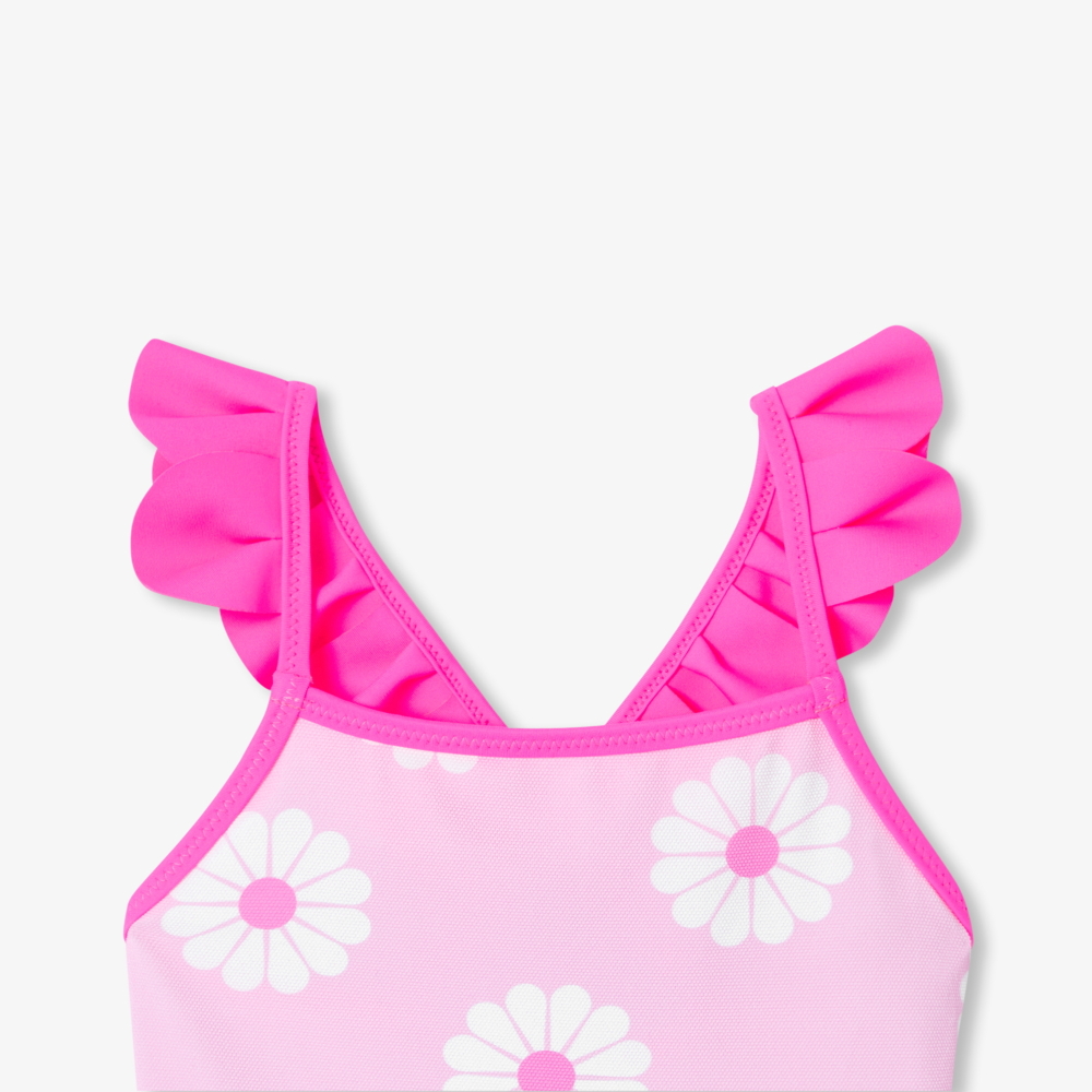 Yüzme keyfi ve sahilde oyun dolu anlar için ideal olan bu kız çocuk mayo, papatya desenleriyle enerjik bir görünüm sunar. Yumuşak piqué kumaşıyla konfor sağlayan model, neon pembe petal formdaki askılarıyla dikkat çeker. Tatil valizlerinin vazgeçilmez parçalarından biri olacak bu tasarım, yaz stilini tamamlar.