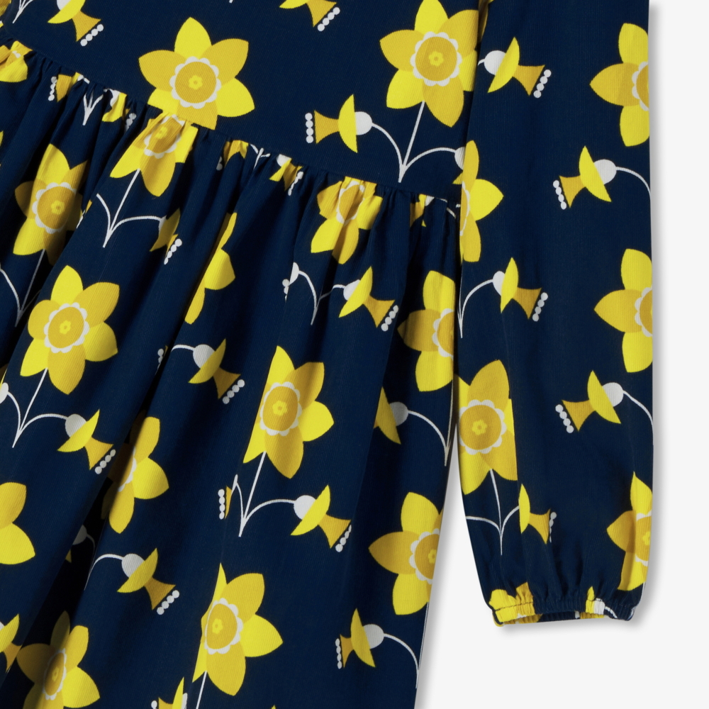Milleraie kadifeden yapılmış bu kız çocuk elbisesi, Jacadi'nin tüm zarafetini ve inceliğini yansıtıyor. Canlı renkli nergislerden oluşan özel bir desene sahip olan elbise, büzgülü bel kısmıyla öne çıkıyor. Astarlı ve kolayca giyilebilen bu elbiseyi, şık ve şehirli bir görünüm için renkli taytlar ve İngiliz paltosuyla kombinleyebilirsiniz.