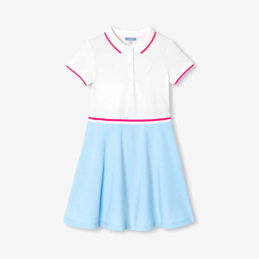 Polo yakası ve kemerli beli ile tenis elbisesi havası taşıyan bu kız çocuk pike örgü elbise, sezon boyunca sportif-şık bir stilin habercisi. Düz ya da renk bloklu seçenekleriyle; spor ayakkabı veya sandaletlerle kombinlenerek ilkbahar ve yaz ayları boyunca kızınıza eşlik eder.