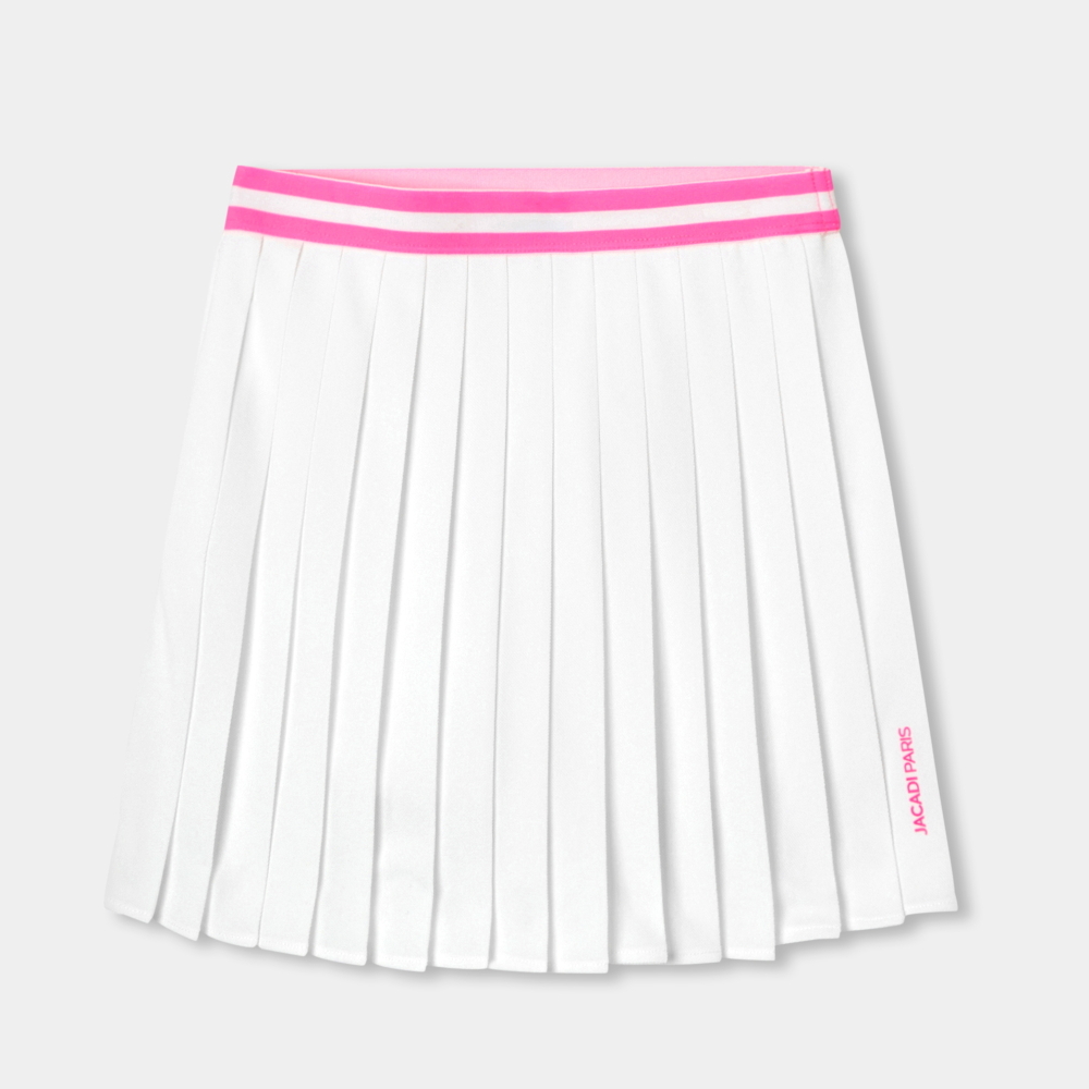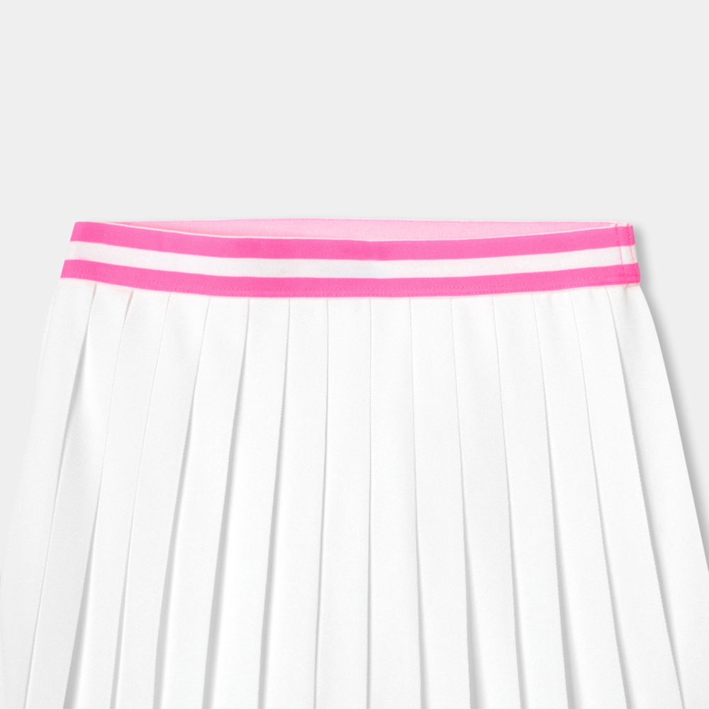 Spor giyimden ilham alan bu kız çocuk pileli etek, çağdaş bir tenis eteği formunda yeniden yorumlandı. Akıcı bir duruş sunan teknik pike örgü kumaştan üretilen model, çizgili lastikli beli ile tasarıma dinamik bir hava katar. Tişört ya da polo tişörtlerle kombinlenerek preppy ve sportif bir görünüm elde edilebilir.
