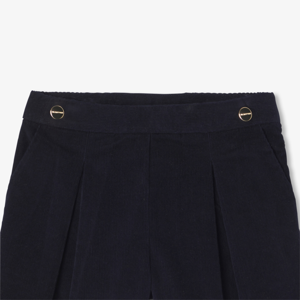 Etek alternatifi olarak hem şık hem pratik bu kız çocuk şort etek, Jacadi tasarımcılarının bu sezon için önerisidir. Ton sür ton pamuk astarlı kadife kumaştan üretilen model, önündeki zarif pilelerle preppy bir görünüm sunar. Bluz ve yüksek çoraplarla okul günlerinde mükemmel bir kombin oluşturur.