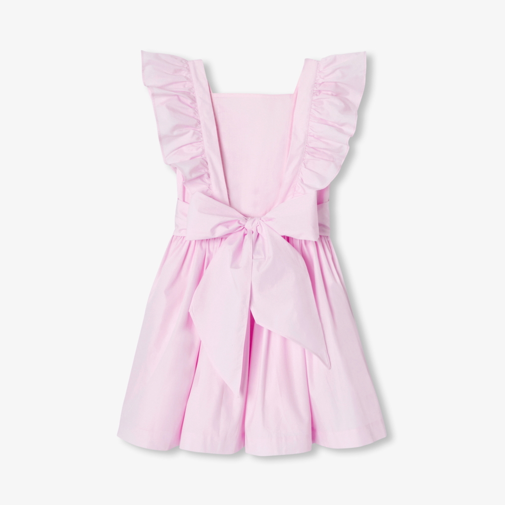 Zarif pembe poplin kumaşıyla öne çıkan bu elbise, sırtı açık tasarımıyla modern ve romantik bir stil sunar. Fırfır detayları ve büzgülü bel kesimiyle hareket kazanan model, arkadan bağlanan kemeriyle silüeti zarifçe vurgular. Özel davetler ve yaz buluşmaları için ideal olan bu elbise, gardırobun en şık parçalarından biri olmaya adaydır.