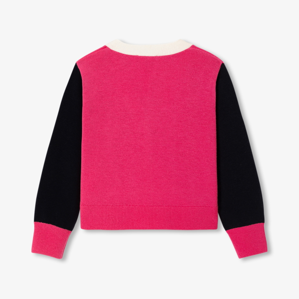 Kız Çocuk Renk Bloklu V Yaka Hırka