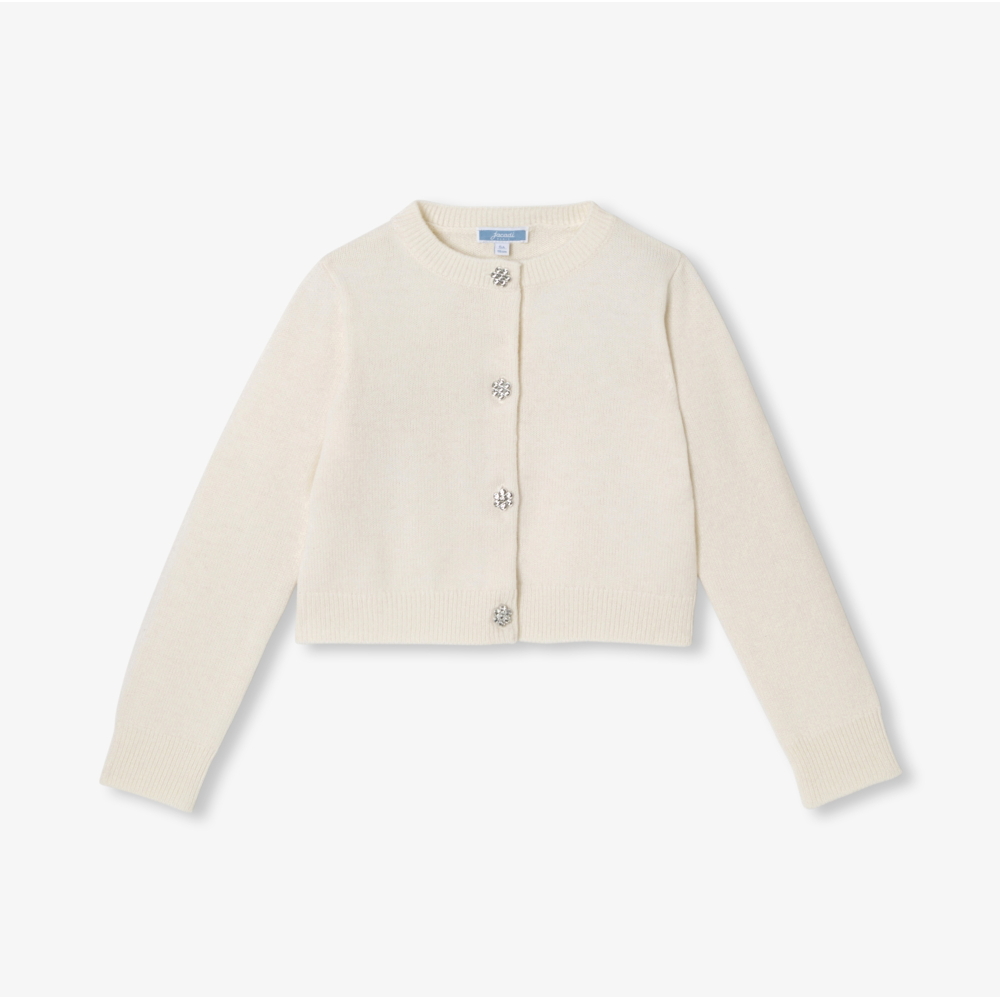 Tasarımcılarımız yıl sonu için zarif bir kız çocuk hırkası hazırladı. Sürdürülebilir pamuk ve yün karışımından üretilen bu model, çiçek formunda kristal düğmelerle süslendi. Kesimi kusursuz, detayları ince işçilikle tamamlanan hırka; yılbaşı elbiselerinin üzerine açık şekilde veya yakalı bir tişört ve tül etekle kapalı şekilde giyildiğinde hem modern hem de elegant bir siluet oluşturur.