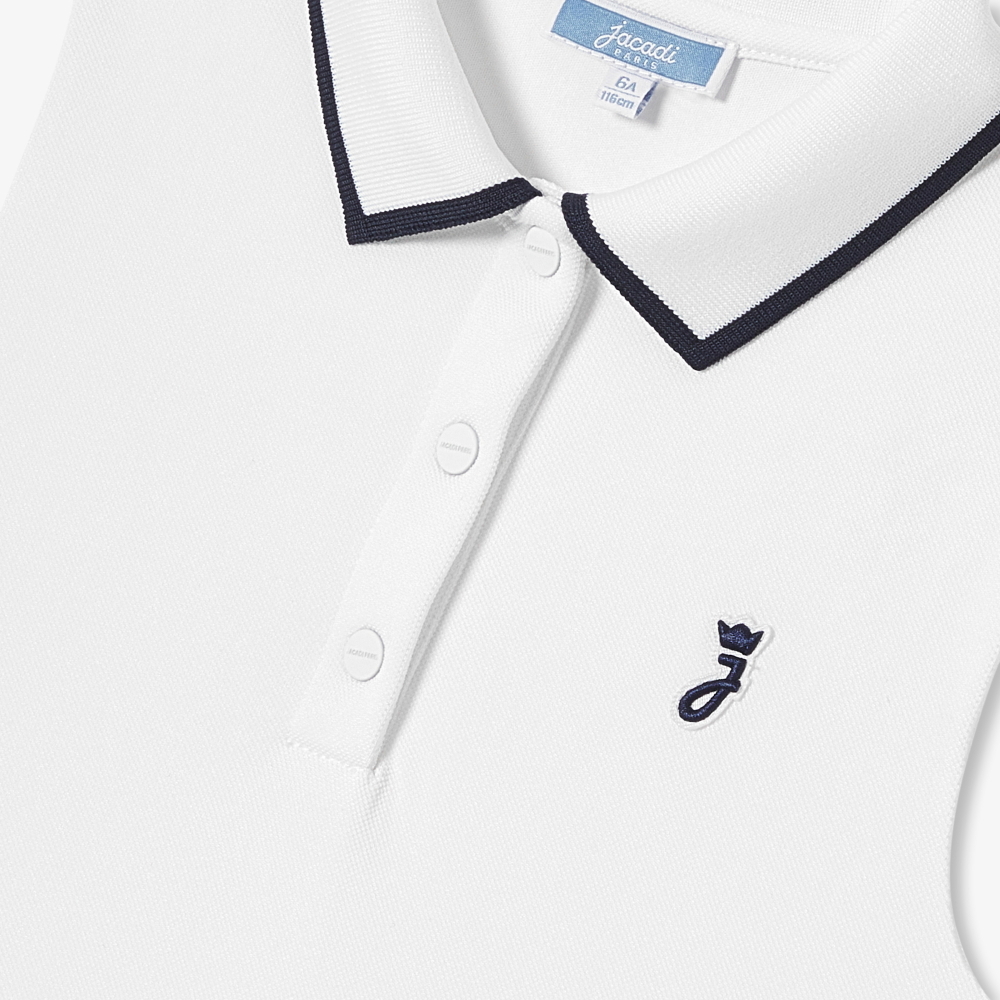 Kusursuz kesimiyle öne çıkan bu kız çocuk elbise, zarif ve sportif bir stil sunar. Polo yaka ve düğme patı detayıyla tenis elbiselerinden ilham alan model, kalıcı pileli etek formu ve pike dokuma kumaşıyla sezonun öne çıkan parçalarından biridir.