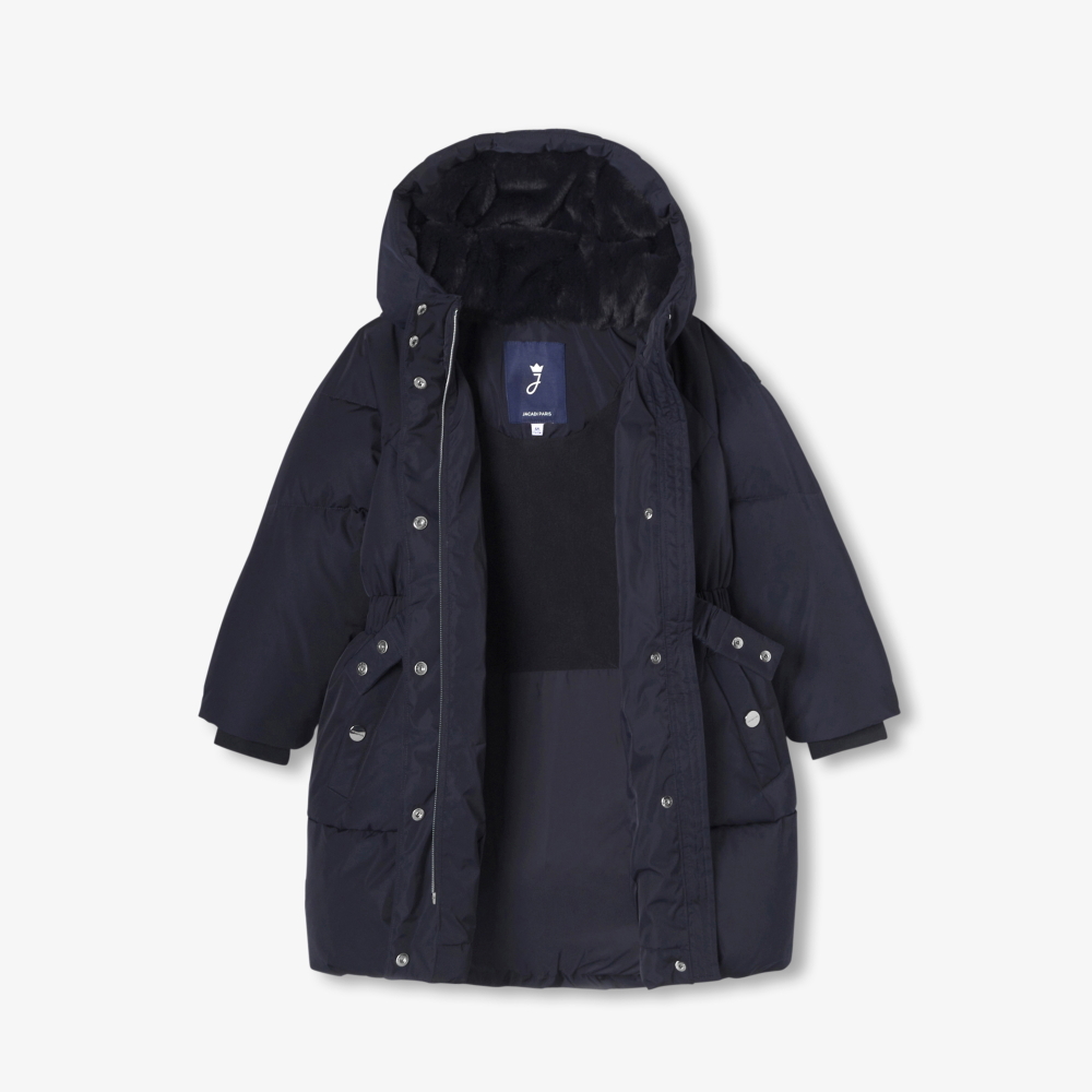 Şık ve şehirli kız çocuk kaz tüyü montumuz, modern bir görünüm için uzun kesimli ve belden sıkılaştırılmıştır. Kaz tüyü dolgusu sayesinde ilk soğuk hava dalgalarını savuşturmak için idealdir. Eğimli cepleri ve fermuarlı kapaması, günlük kullanım ve tatiller için mükemmel olan bu zamansız renkli parçayı tamamlar.