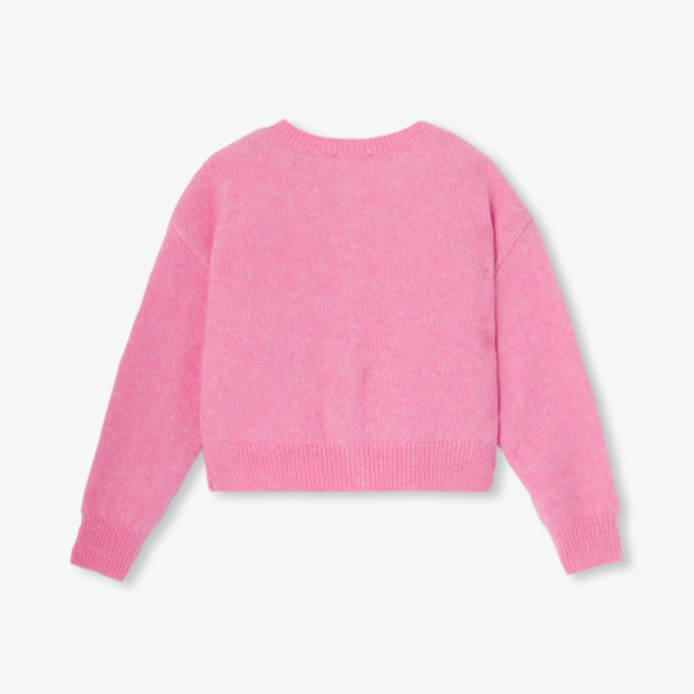 Sıcak ve renkli bir kış gardırobunun vazgeçilmezi olan bu kız çocuk hırka, klasik tasarımı modern detaylarla buluşturur. Sürdürülebilir yün ve alpaka karışımı tüylü örgüden üretilen model, çıtçıtlı kapamasıyla pratik bir kullanım sunar. Bluz veya tişört üzerine giyildiğinde ideal bir kış silueti yaratır.