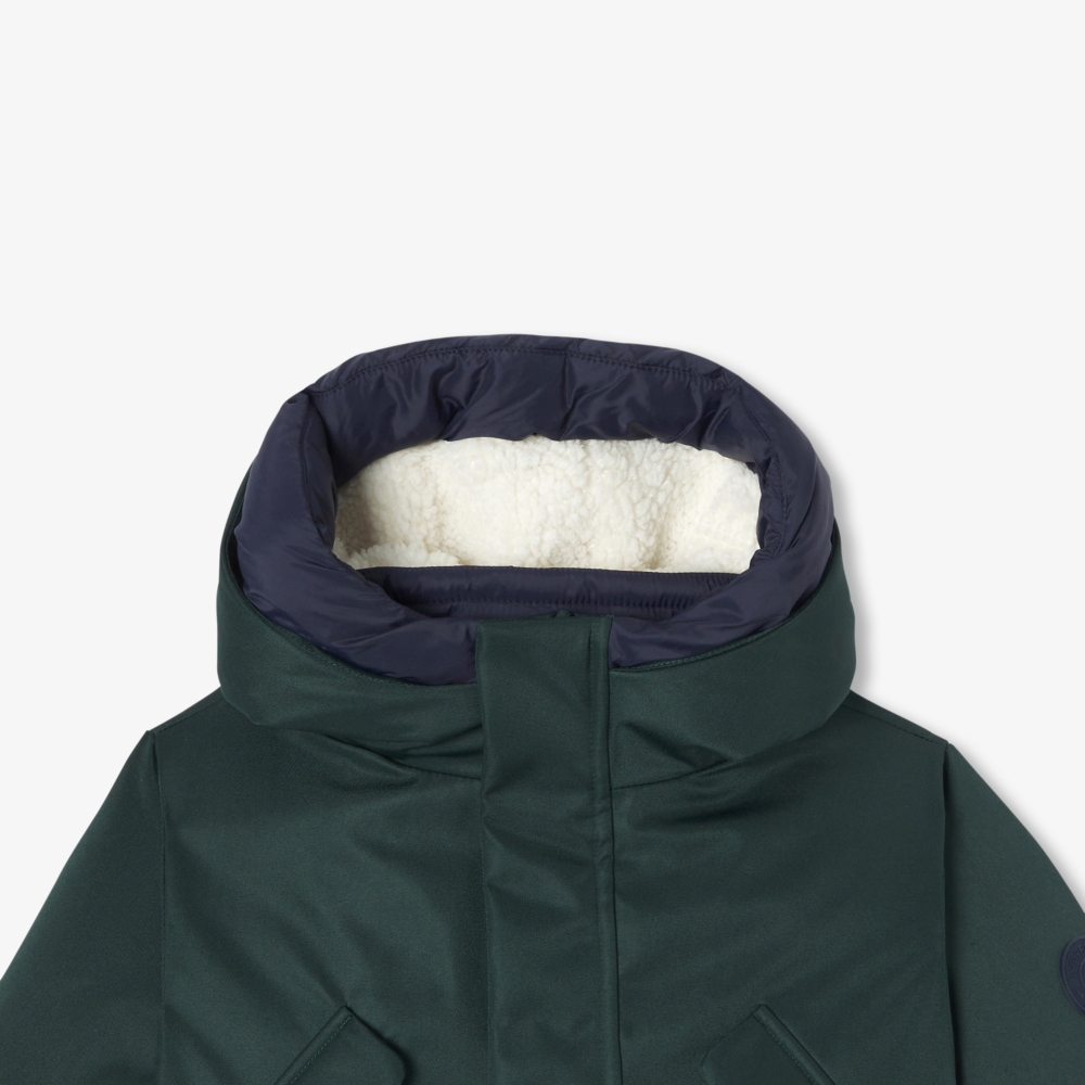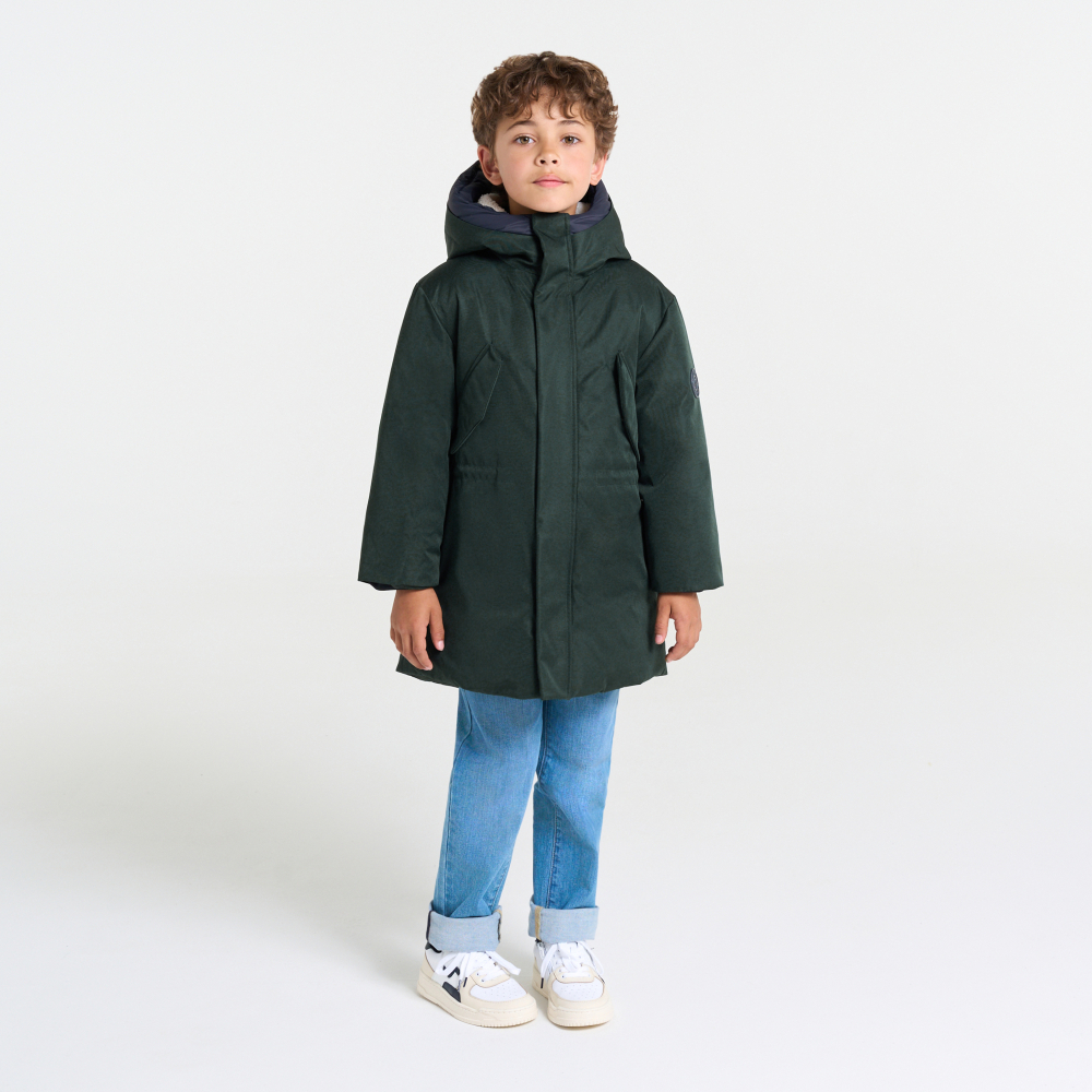 Tasarımcılar, bu unisex çocuk parkasının kesimini yeniden tasarlayarak onu teknik ve çağdaş bir parça haline getirdiler. Daha kentsel bir silüet için uzun kesimli olan bu parka, su geçirmez, rüzgar geçirmez ve nefes alabilen geri dönüştürülmüş polyesterden üretilmiştir. Üst kısmı kadife, alt kısmı flanel astarlı olan parka, suni kürk astarlı çift kapüşon efektiyle modernize edilmiş ve yalıtımlı nervürlü manşetlere sahiptir. Şehir ve kayak tatilleri için mükemmel olan bu arazi parkası, minik yavrunuzu sonbahardan kış sonuna kadar giydirecektir.