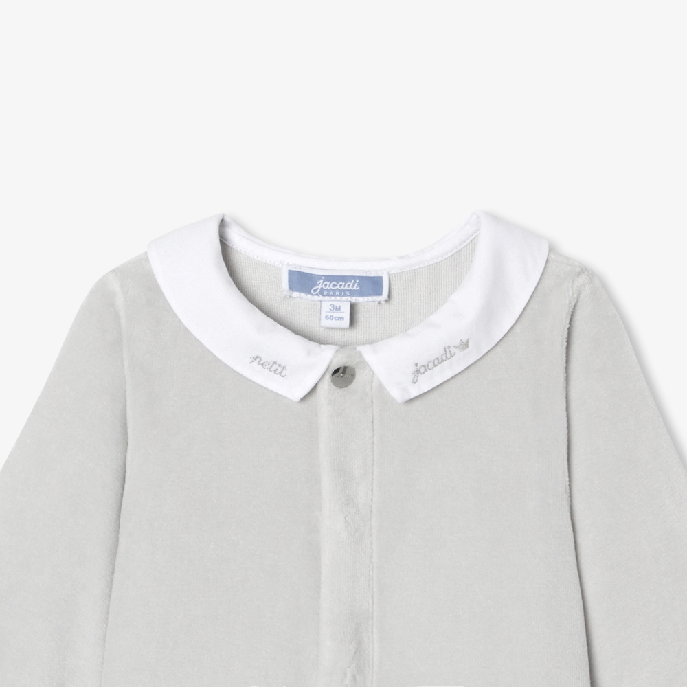 Gece gardırobunun klasiklerinden olan bu bebek kadife tulum, sade ve zarif görünümüyle öne çıkar. Yumuşak ve esnek kadife dokusu üstün bir konfor sunarken, üzerine “Petit Jacadi” yazısı işlenmiş poplin yaka modele zamansız bir şıklık katar. Body üzerine giyildiğinde öndeki gizli çıtçıtlar sayesinde bebeğinizi nazikçe ve kolayca giydirebilirsiniz. Hem kız hem erkek bebekler için uygun olan bu tasarım, doğum hediyesi olarak da mükemmel bir seçimdir.
