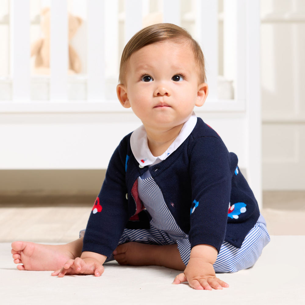 Yumuşak, esnek çift örgülü kumaşı ve eğlenceli deseniyle bu bebek hırkası, bebeğinizin çok seveceği rengarenk, geometrik bir dünyaya sizi götürüyor. Arabalar ve küçük farelerle canlandırılan hırkayı, denim tulumlar ve bilekte botlarla kombinleyerek cazibe dolu bir şehir silüeti elde edebilirsiniz.