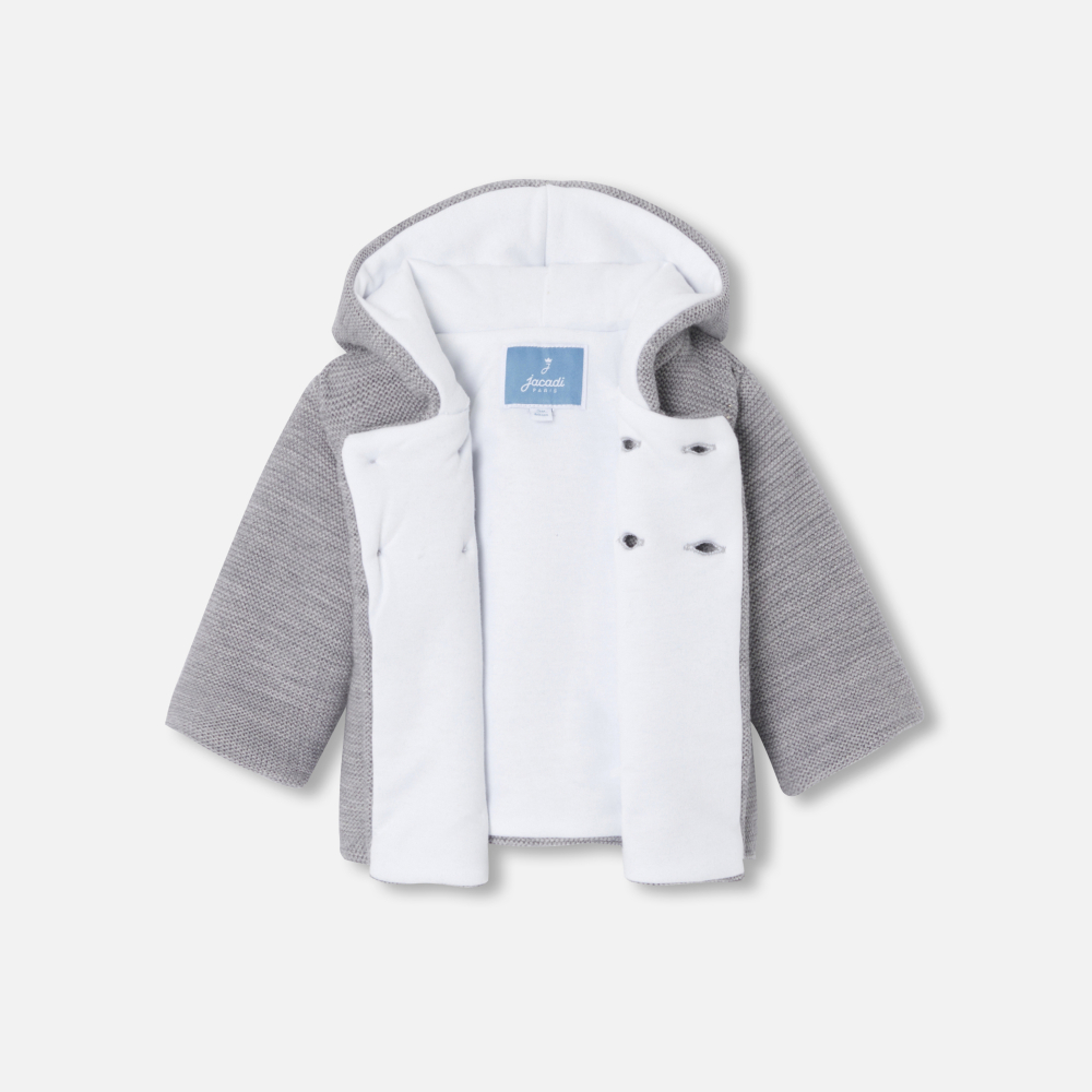 Jacadi gardırobundan hastane çantanıza koyabileceğiniz sembolik bir model olan bu bebek mayosu, şık ve otantik çizgileriyle yenidoğanınızı rahatlatıcı bir yumuşaklıkla saracaktır. Sürdürülebilir Merino yününden üretilen, interlok örgü astarlı, kapitone kumaşlı ve püsküllü başlıklı bu model, ilk gezilerinizde yün tulumla eşleştirmek için mükemmeldir.