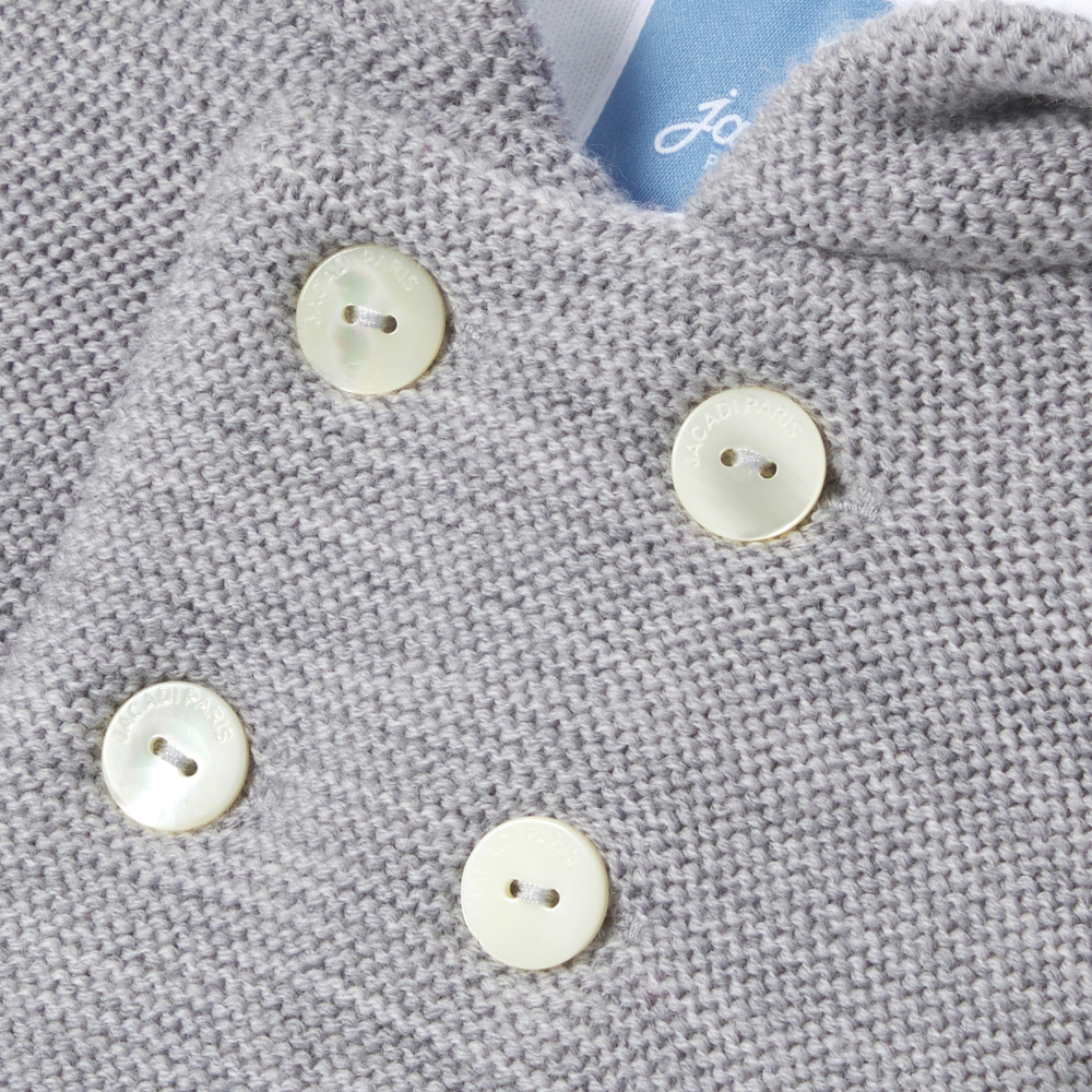 Jacadi gardırobundan hastane çantanıza koyabileceğiniz sembolik bir model olan bu bebek mayosu, şık ve otantik çizgileriyle yenidoğanınızı rahatlatıcı bir yumuşaklıkla saracaktır. Sürdürülebilir Merino yününden üretilen, interlok örgü astarlı, kapitone kumaşlı ve püsküllü başlıklı bu model, ilk gezilerinizde yün tulumla eşleştirmek için mükemmeldir.