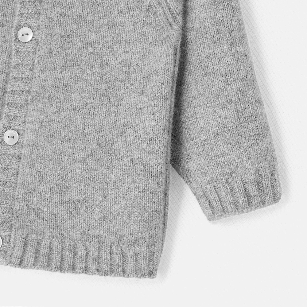 Kaşmirden üretilen zarif hırka yenidoğan bebeğinizin ilk kıyafetlerini oluşturmak için mükemmeldir. Yumuşaklık dolu değerli kaşmirden üretilmiş hırka reglan kollar, nervür detaylar ve sedef düğmeler ile süslenmiştir. Giyim koleksiyonumuzun yeni modeli kaşmir bebek taytı ile giydirerek sıcacık bir takım oluşturabilirsiniz.