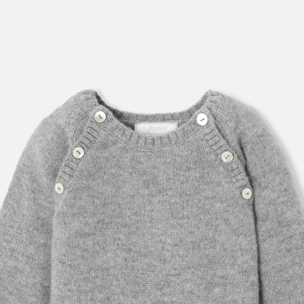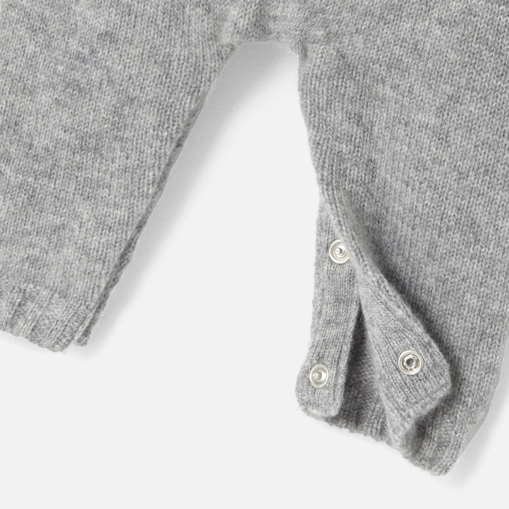 Değerli kaşmirden üretilen bu bebek tulumu, şık ve rafine çizgileriyle minik yavrunuza konfor ve sıcaklık getirecek. Güvenli giyinme için boyun ve kasık kısmında açılan bu yeni doğan bebek hediyesi, kardeşlerine yıl be yıl aktarılacak.