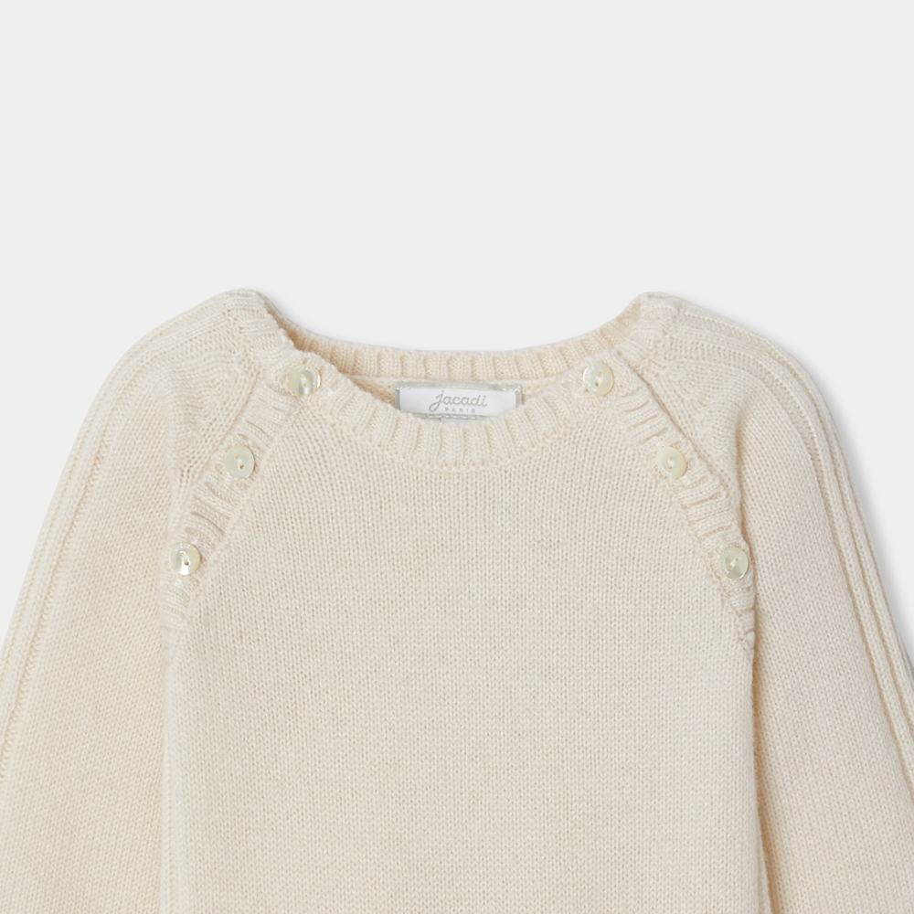 Şık ve minimalist çizgileriyle bu erkek bebek tulumu, bebeğinizin ilk günlerinden itibaren arkadaşı olacak. Jarse dikişli, zarif ve sıcak kaşmirden üretilen bu rahat parça, kolay ve güvenli bir şekilde giydirmek için kol deliklerinden ve kasıktan açılır. Giyilmek ve başkalarına verilmek üzere tasarlanan bu harika bir doğum hediyesi fikridir.