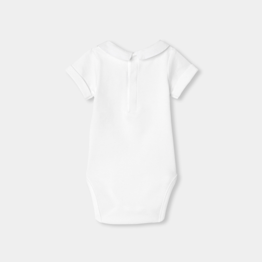 Konfor ve zarafeti bir araya getiren bu pamuk body, yaz aylarına özel kısa kollu tasarımıyla günlük kullanım için ideal bir parçadır. “petit bonheur” (küçük mutluluk) yazılı, elde işlenmiş poplin yakası modele zarif ve anlamlı bir dokunuş katar. Jean veya salopetlerle kolayca kombinlenerek bebeğinizin stilini tamamlar.