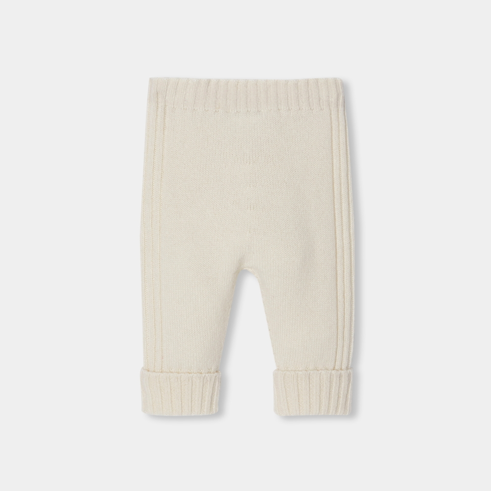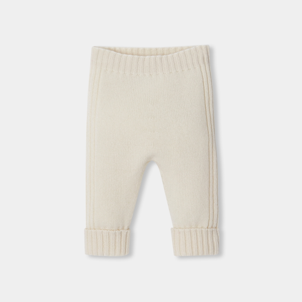 Yumuşak kaşmirden yapılmış zamansız bir gardırop temel parçası olan bu taytlar, bebeğinizi ilk haftalardan itibaren sıcak ve rahat tutacak. Maksimum konfor için dikişsiz örgü, nervürlü detaylar ve elastik bel bandı, bu pantolonu tamamlıyor ve uyumlu hırka ile eşleştirilerek çok rahat bir günlük kıyafet yaratılabilir.